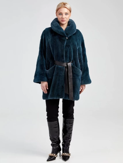Шуба из меха норки с поясом для женщин 20701(в), зеленая, размер 44, артикул 33030
