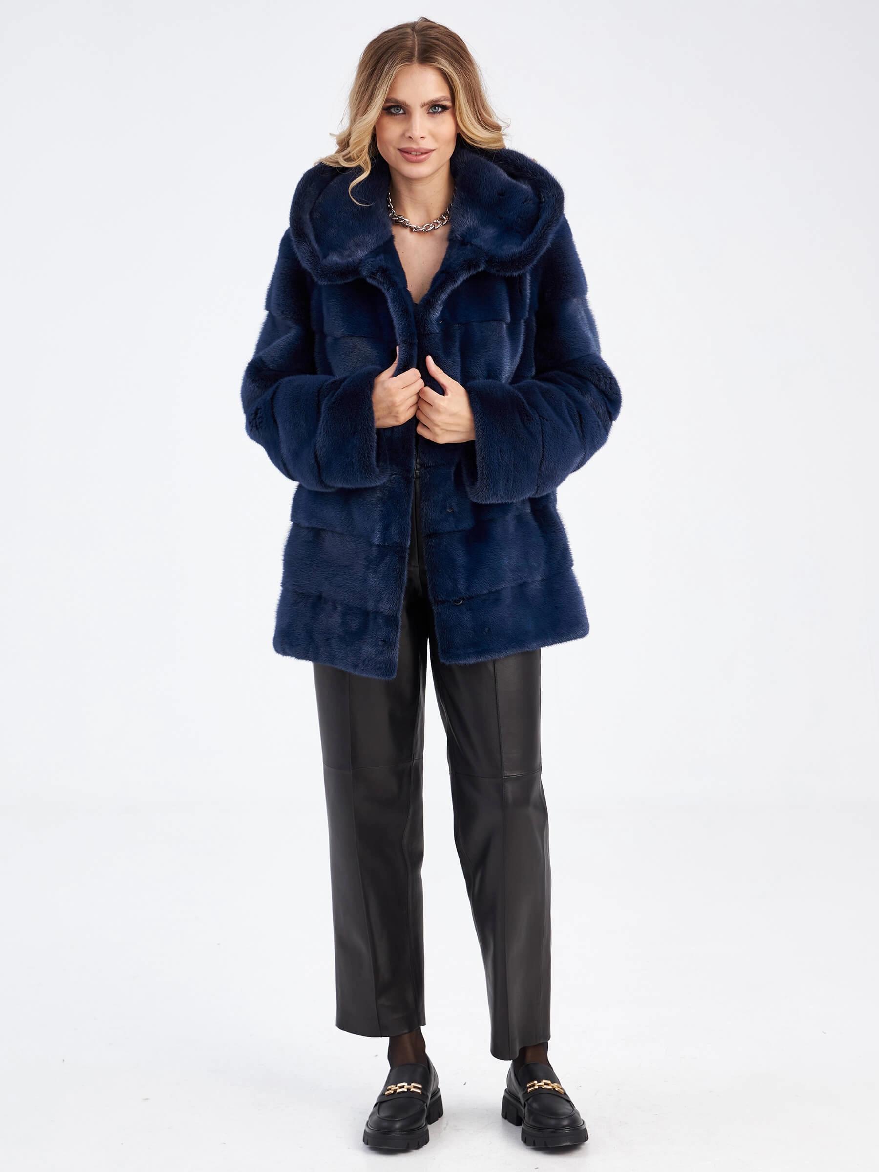 Короткая куртка автоледи из меха норки для женщин 2а-к(к), сине-черная, размер 44, артикул 33900
