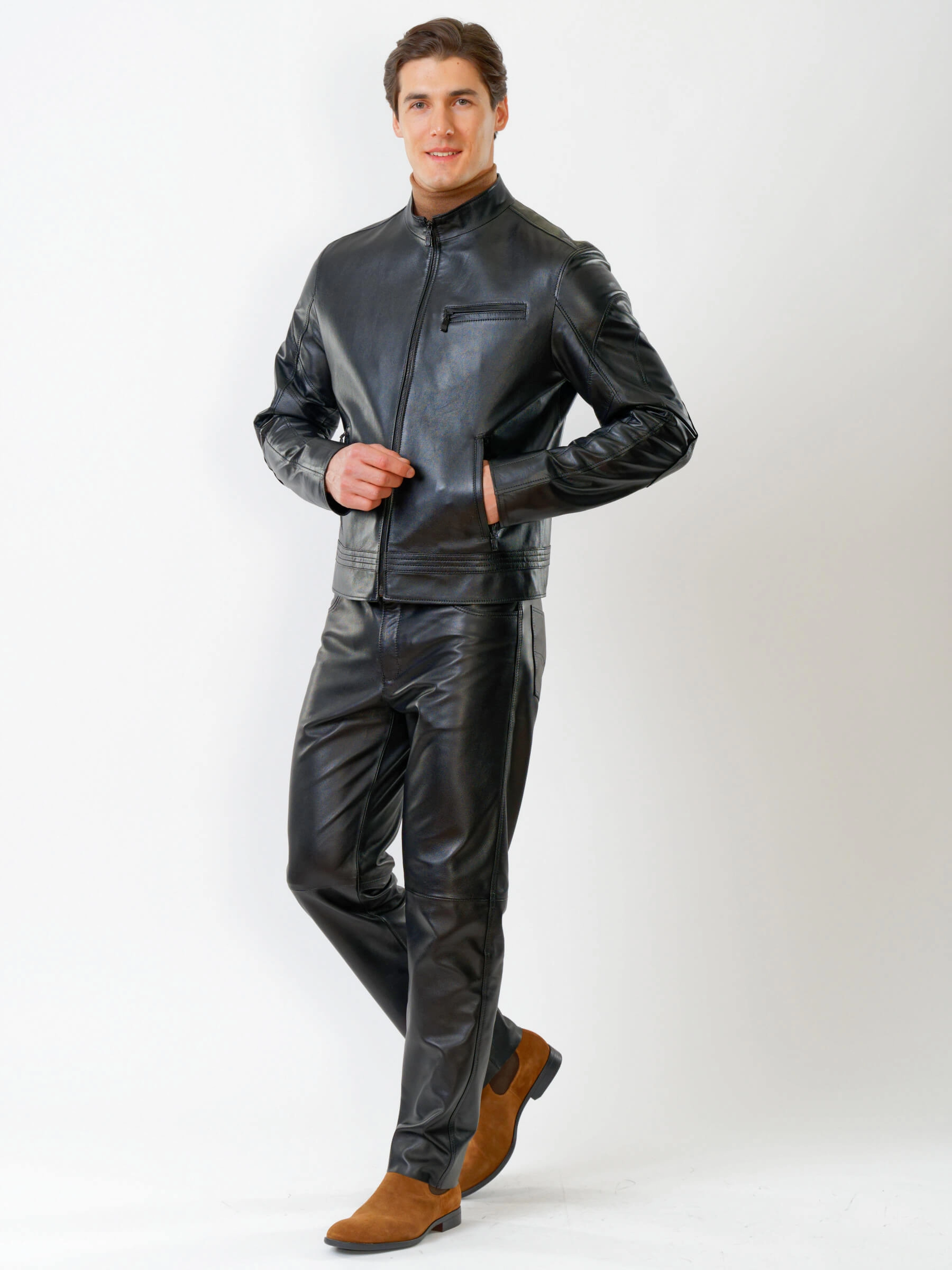 Кожаная куртка мужская 506о, черная, размер 48, артикул 27870