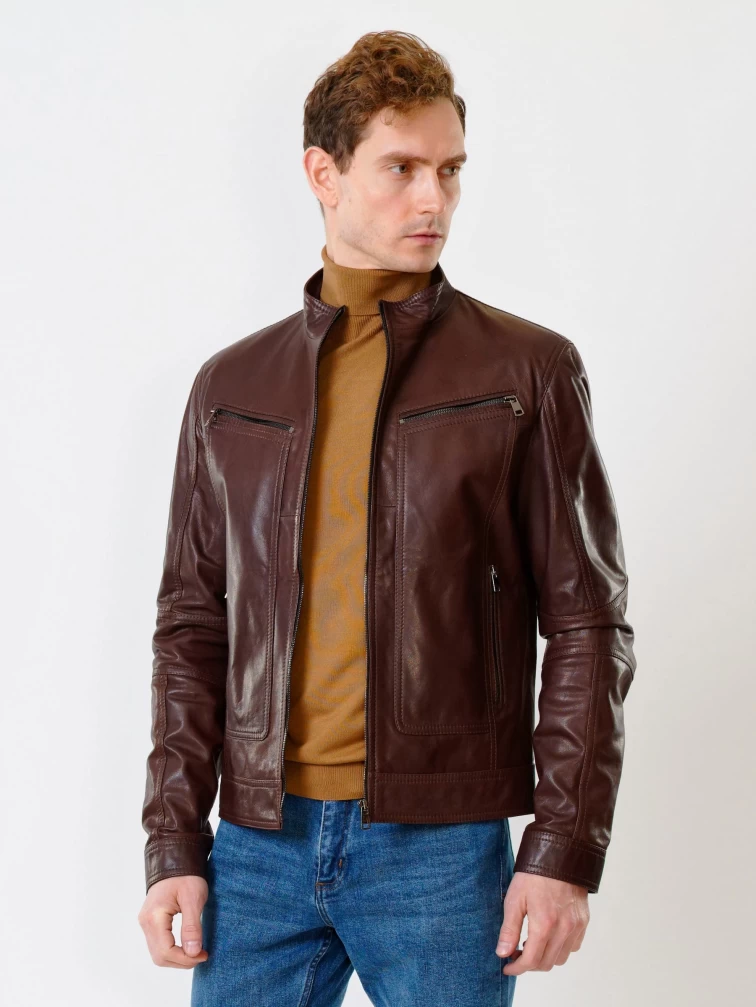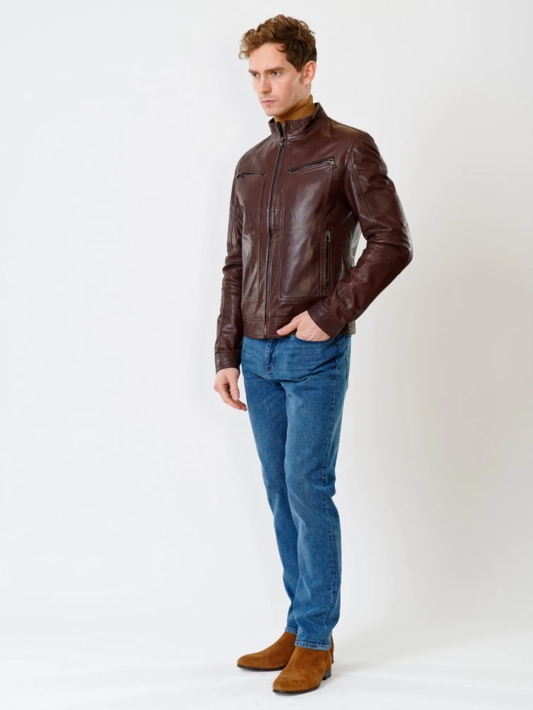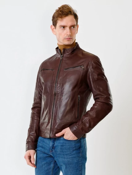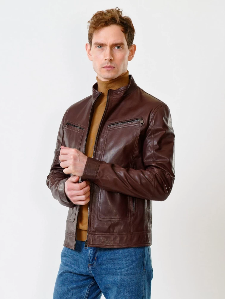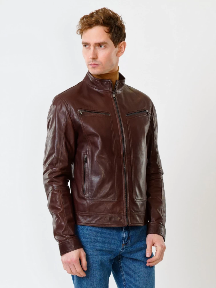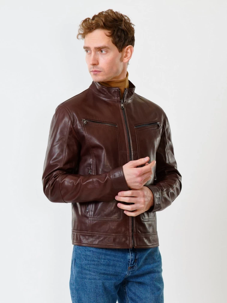 Кожаная куртка мужская 507, коричневая, размер 50, артикул 28420