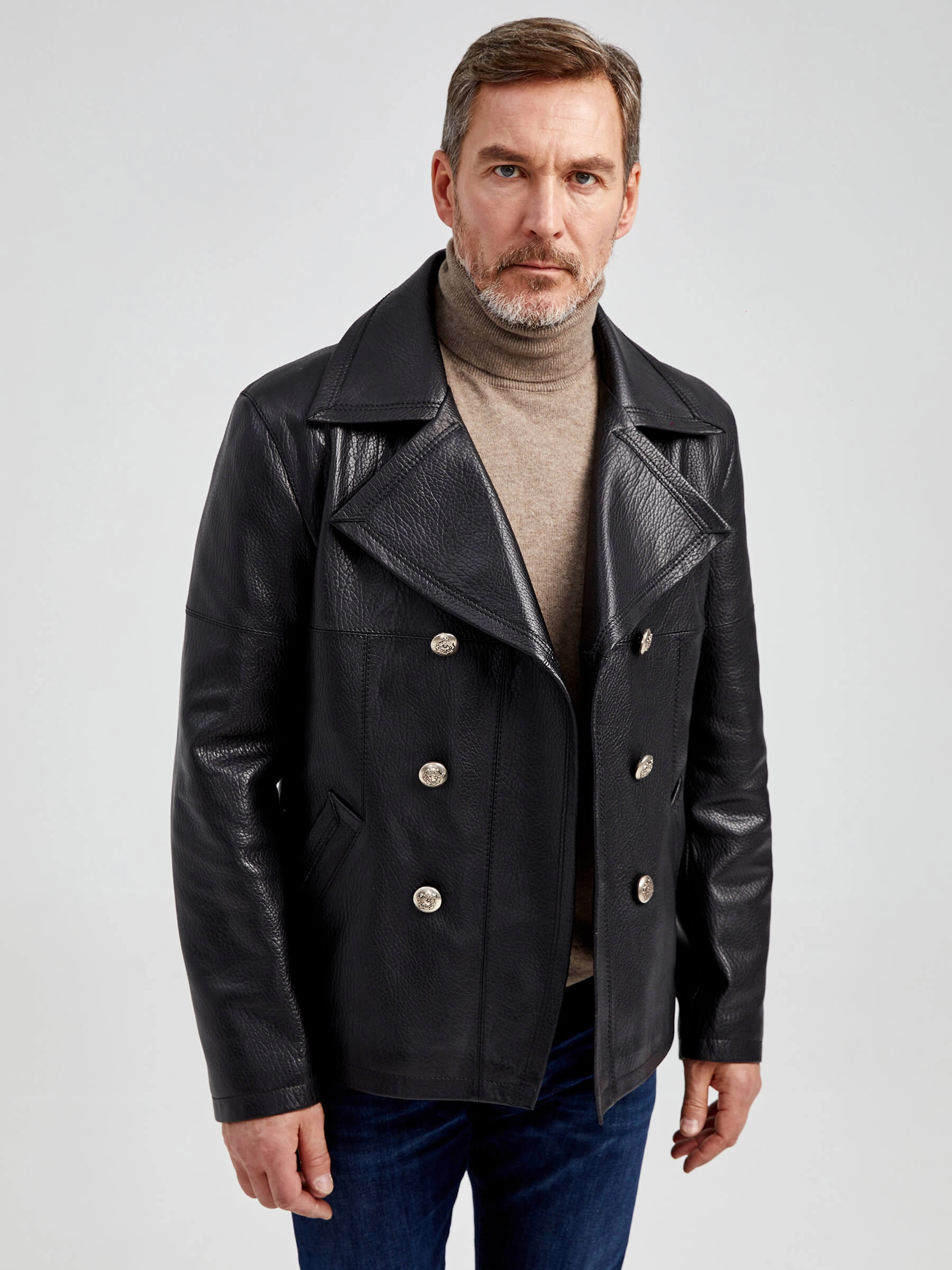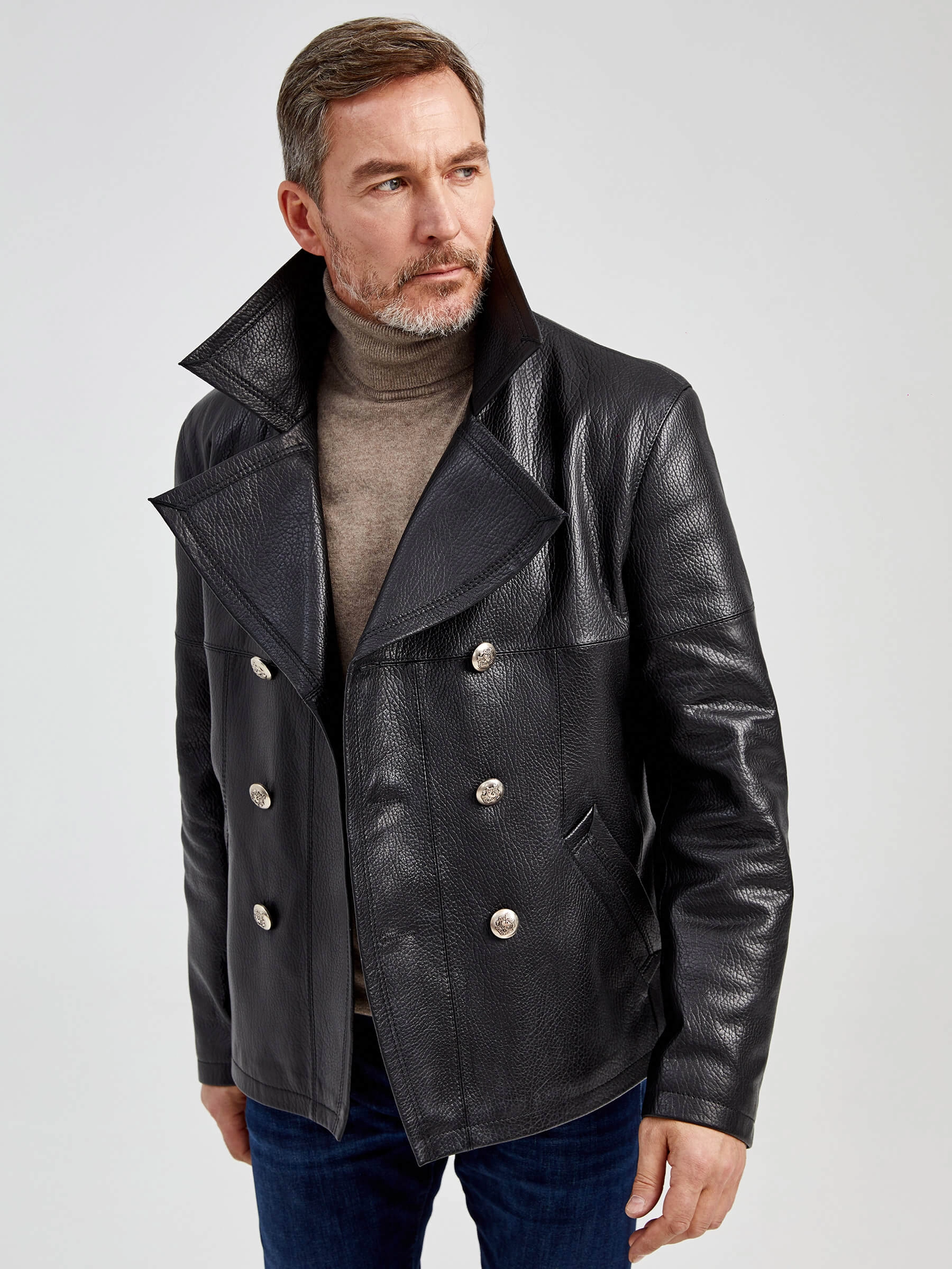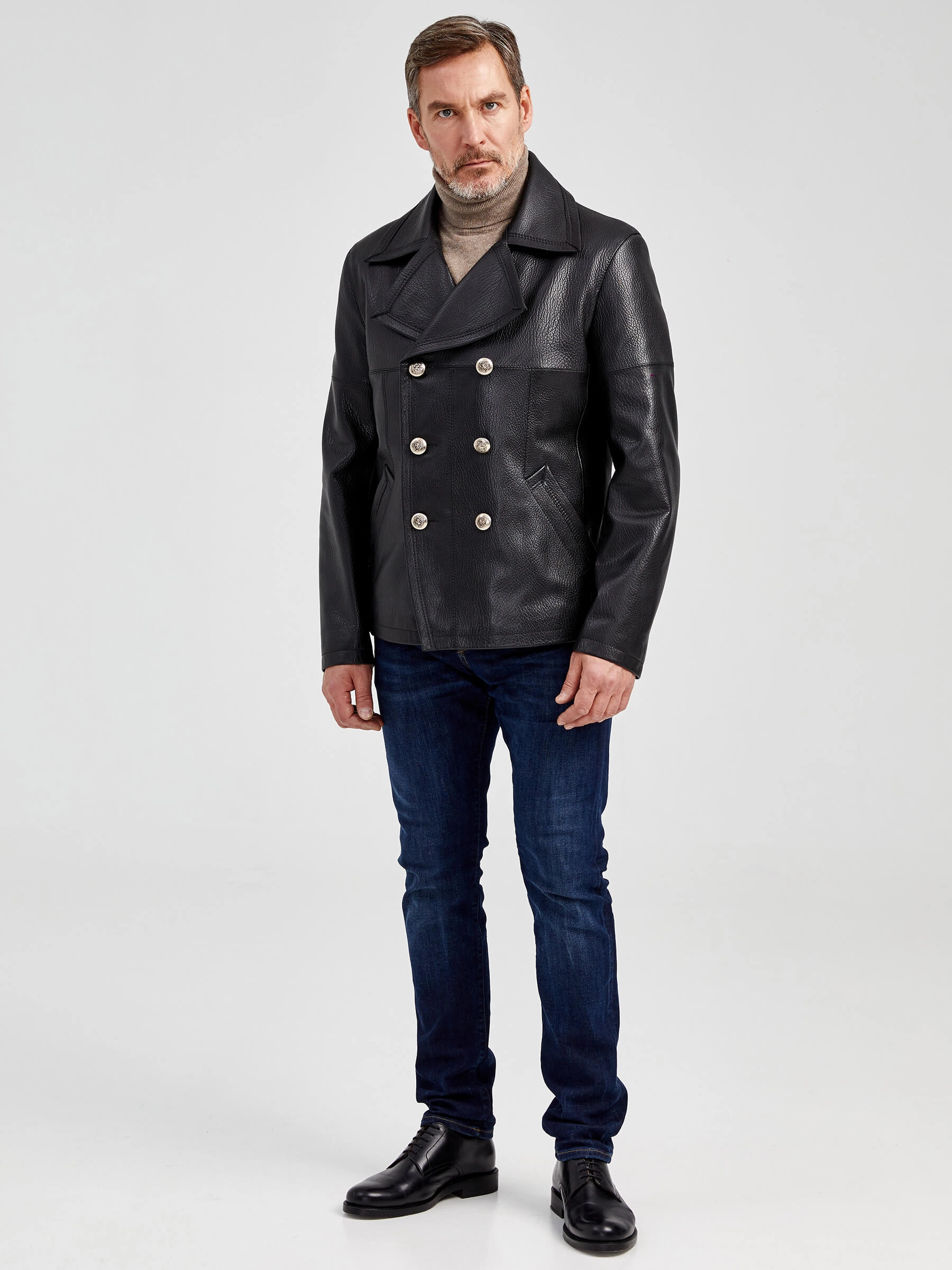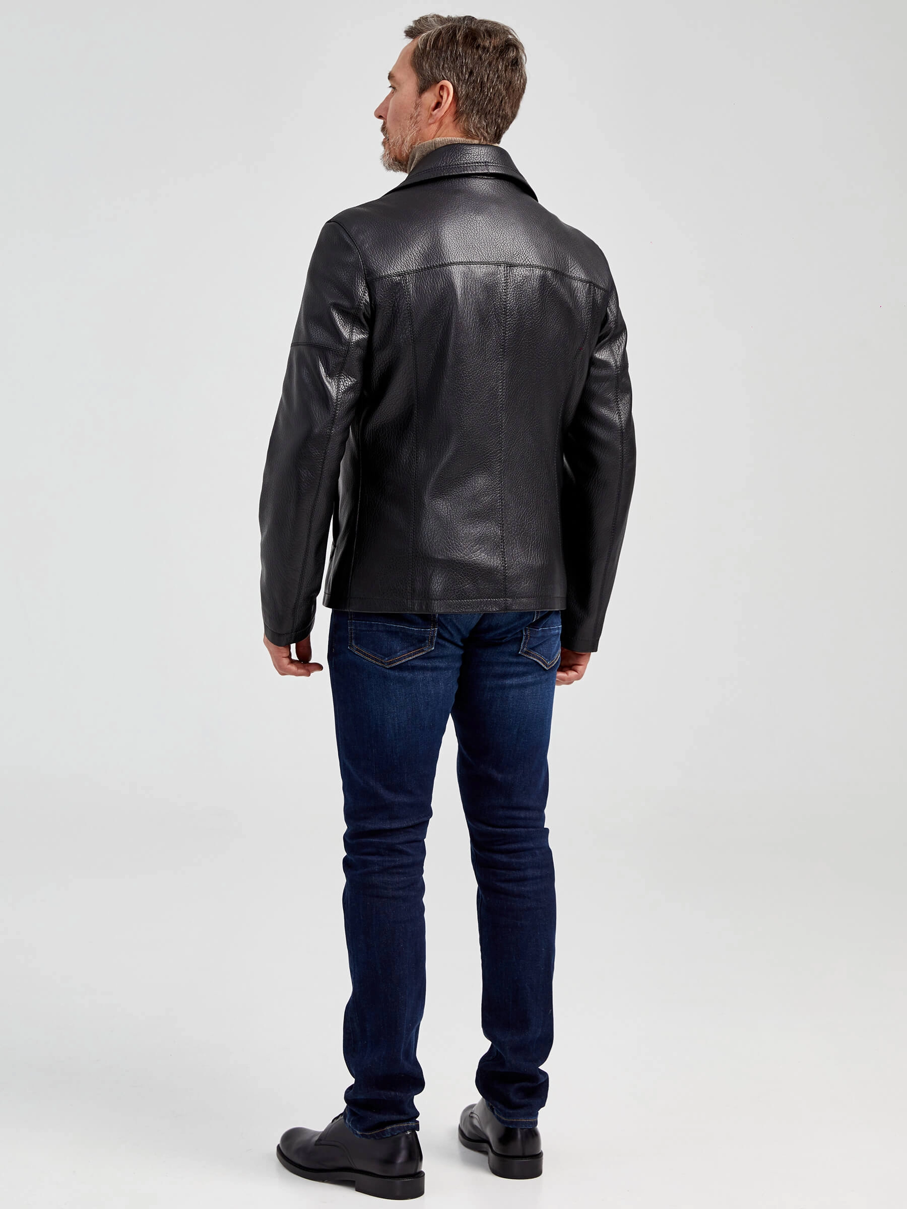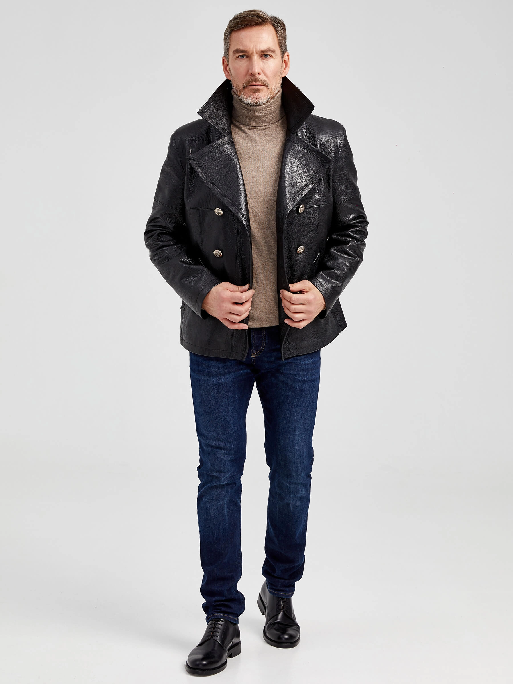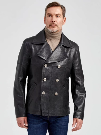Двубортная мужская кожаная куртка Клуб, черная, размер 48, артикул 28982