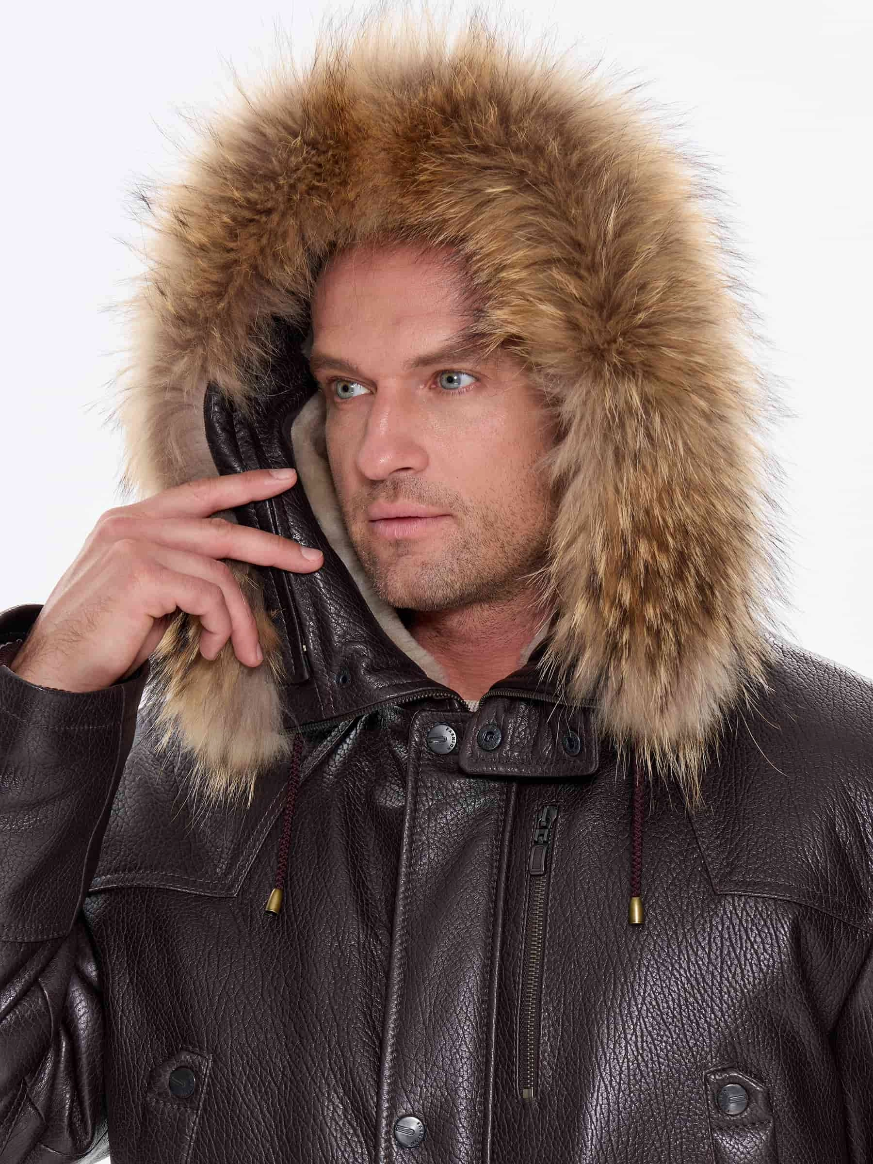 Куртка «Аляска» в современной интерпретации. Кожа высшего качества. Современный утеплитель. Удобный капюшон. Тонкорунная овчина внутри капюшона. Опушь капюшона из меха енота. Множество наружных и внутренних карманов. Свободный крой обеспечивает комфортную посадку по фигуре. Куртка очень удобна за рулём.