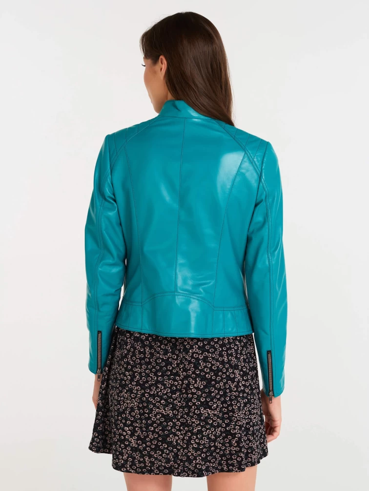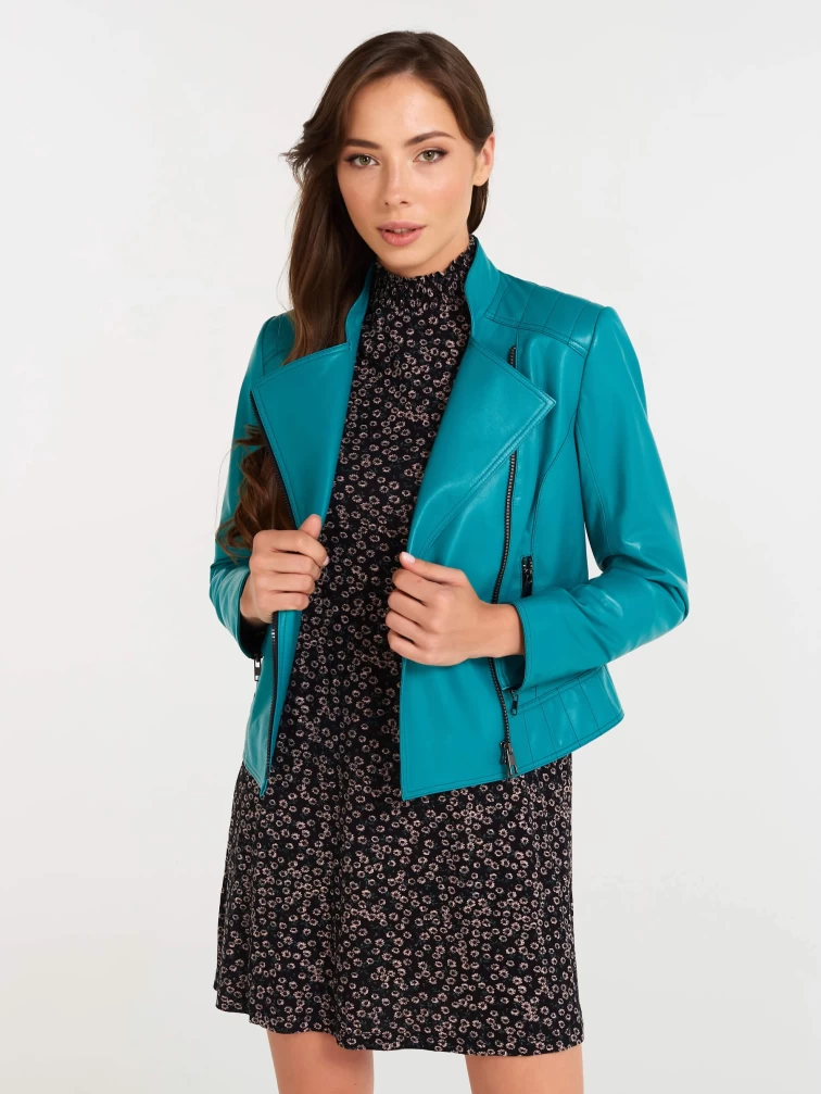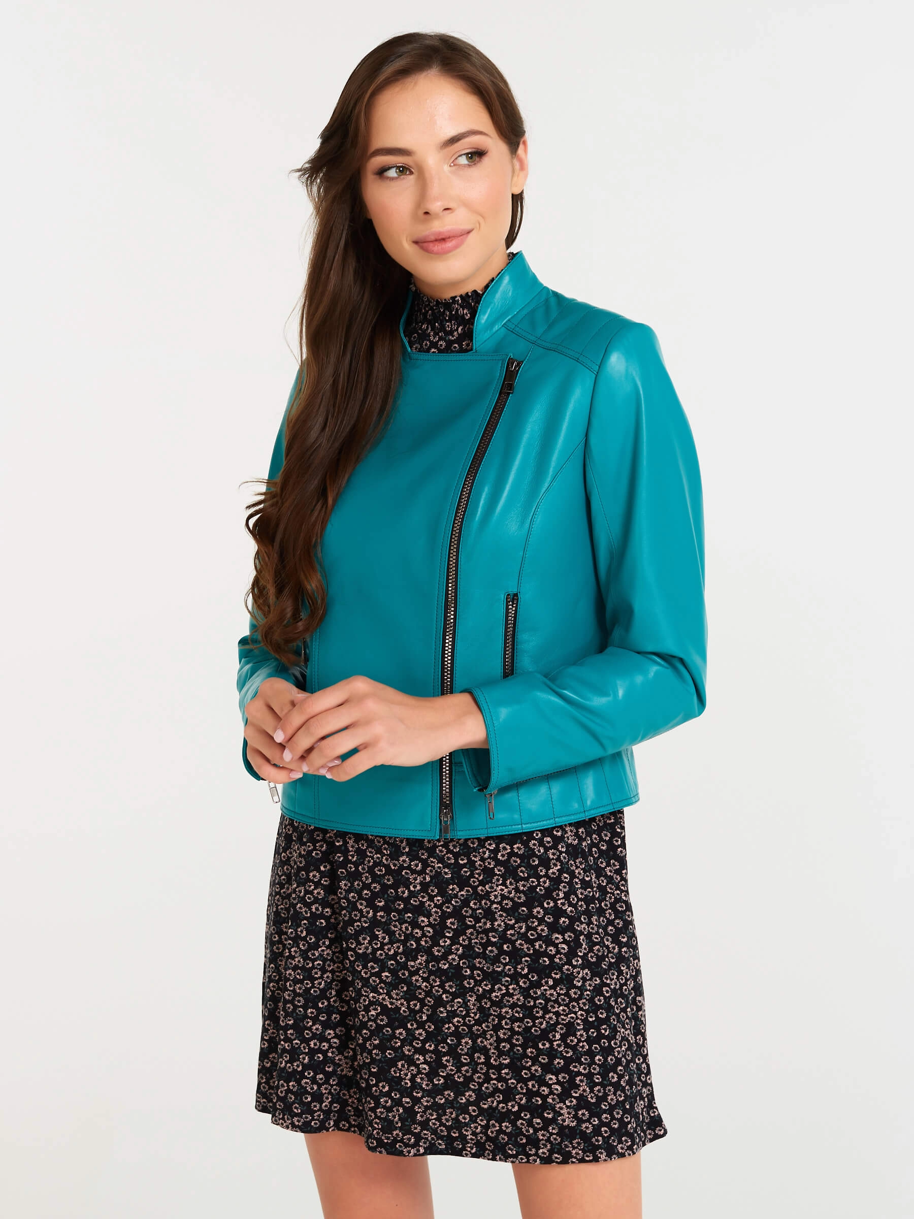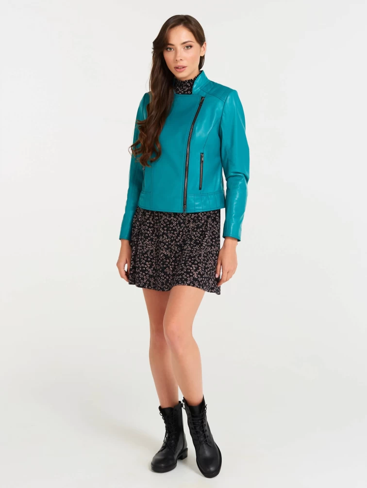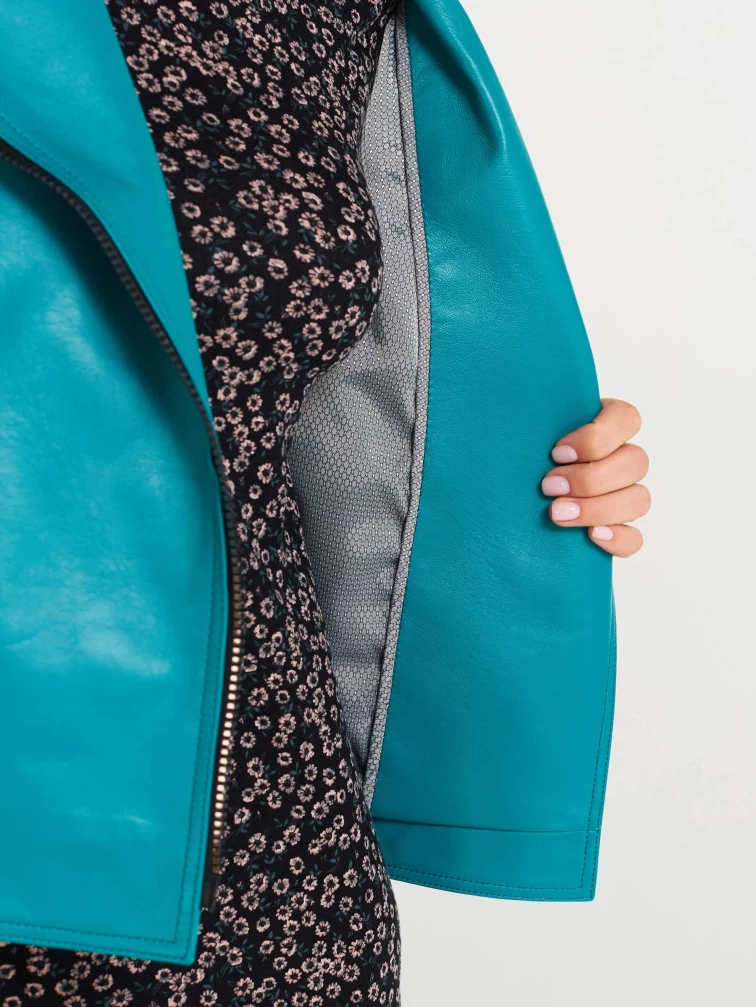 Кожаная куртка косуха женская 300, бирюзовая, размер 44, артикул 18790