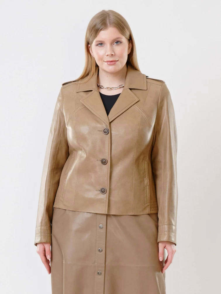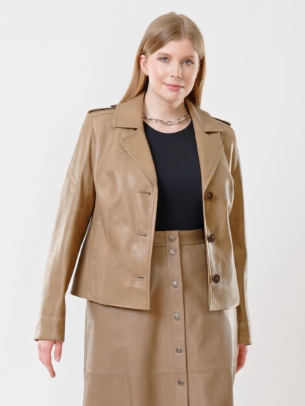 Короткая женская кожаная куртка пиджак 304, серо-коричневая, размер 46, артикул 91433