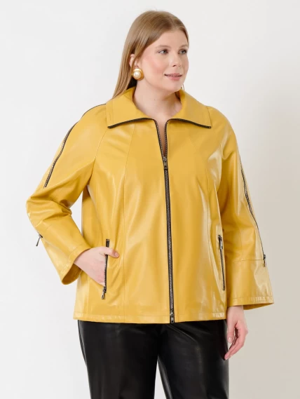 Кожаная женская куртка оверсайз 385, желтая, размер 52, артикул 91331