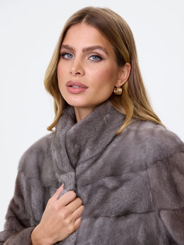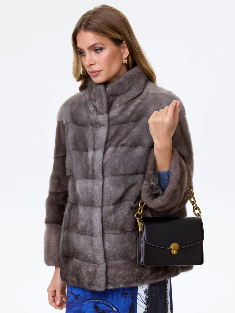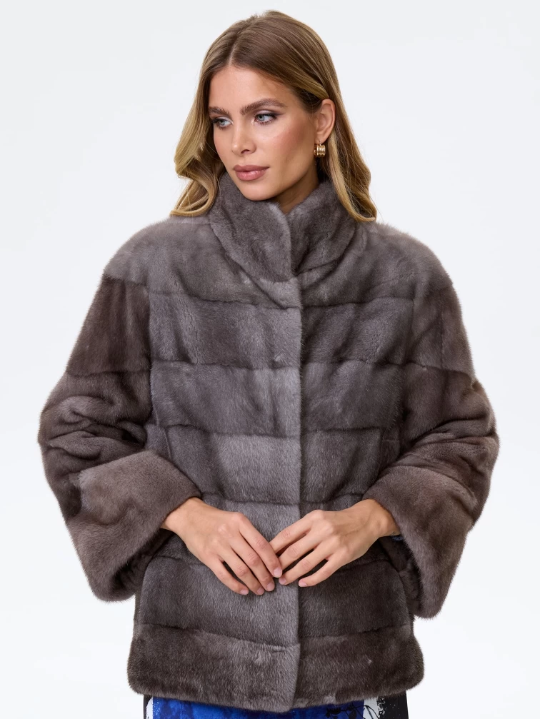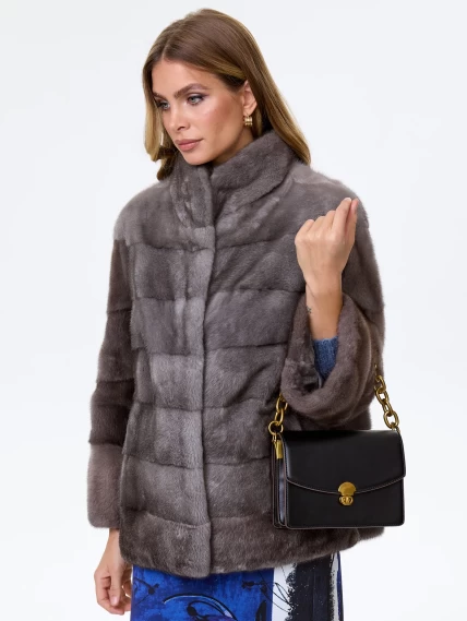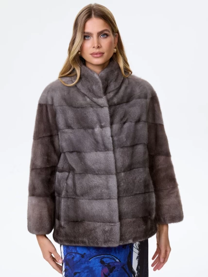 Норковая поперечная куртка женская Ольга(в), графитовая, размер 46, артикул 34030
