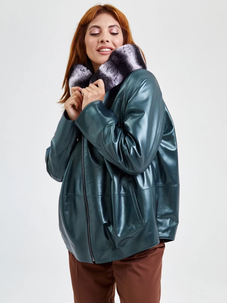 Товар кожаная женская куртка с капюшоном и мехом "рекса" 308уш, зеленый, размер 56, артикул 91751 выполнен из натуральной кожи с застежкой молния. Рассчитан на сезон: демисезон. Длина изделия 74 см, силуэт свободный.