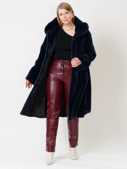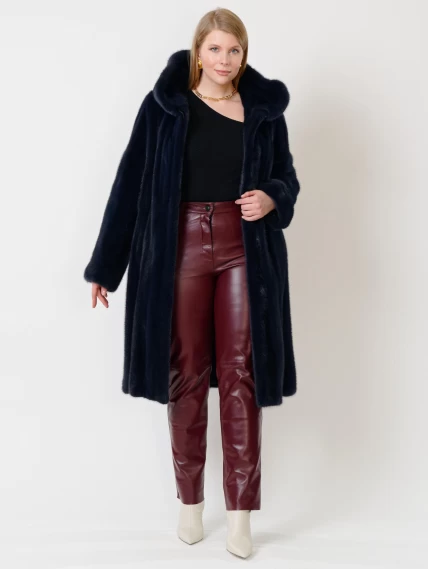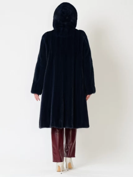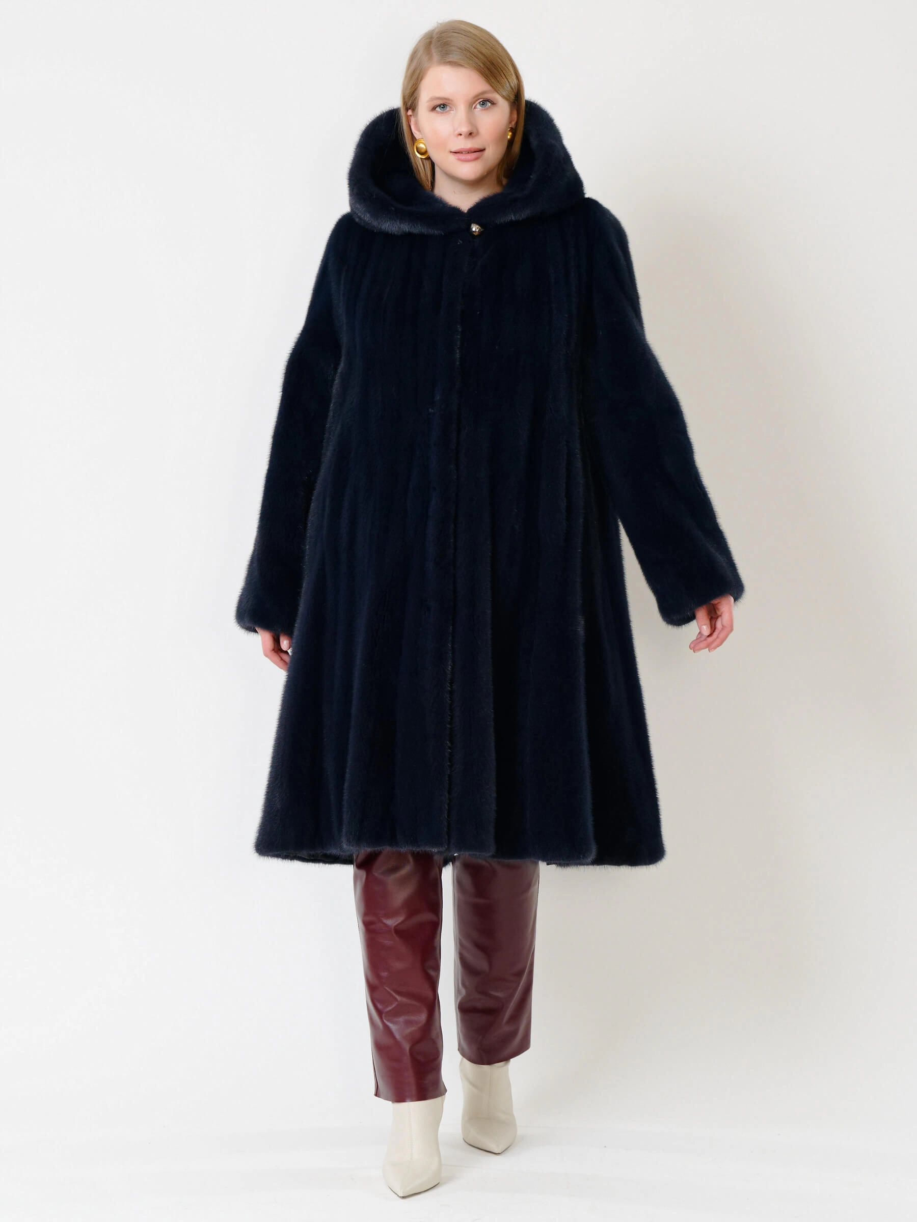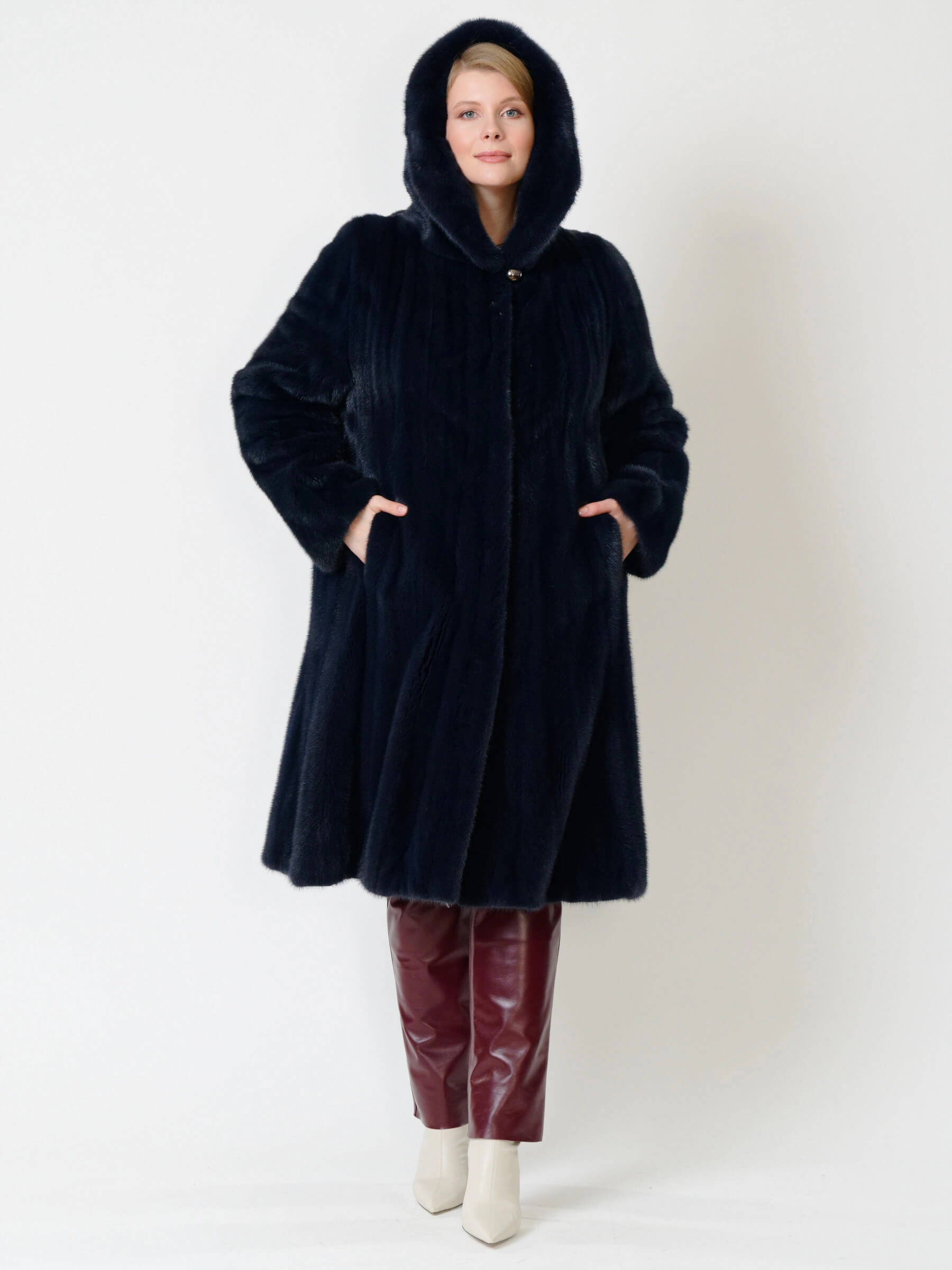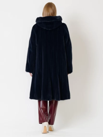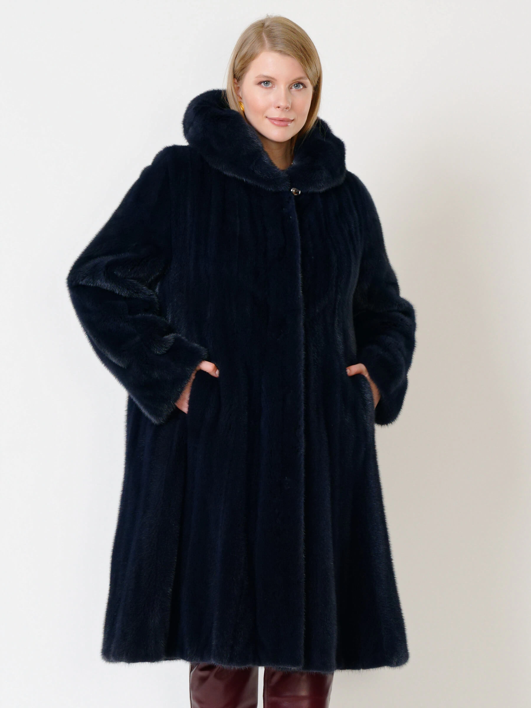 Норковая женская шуба с капюшоном 4021(к), синяя, размер 52, артикул 32730