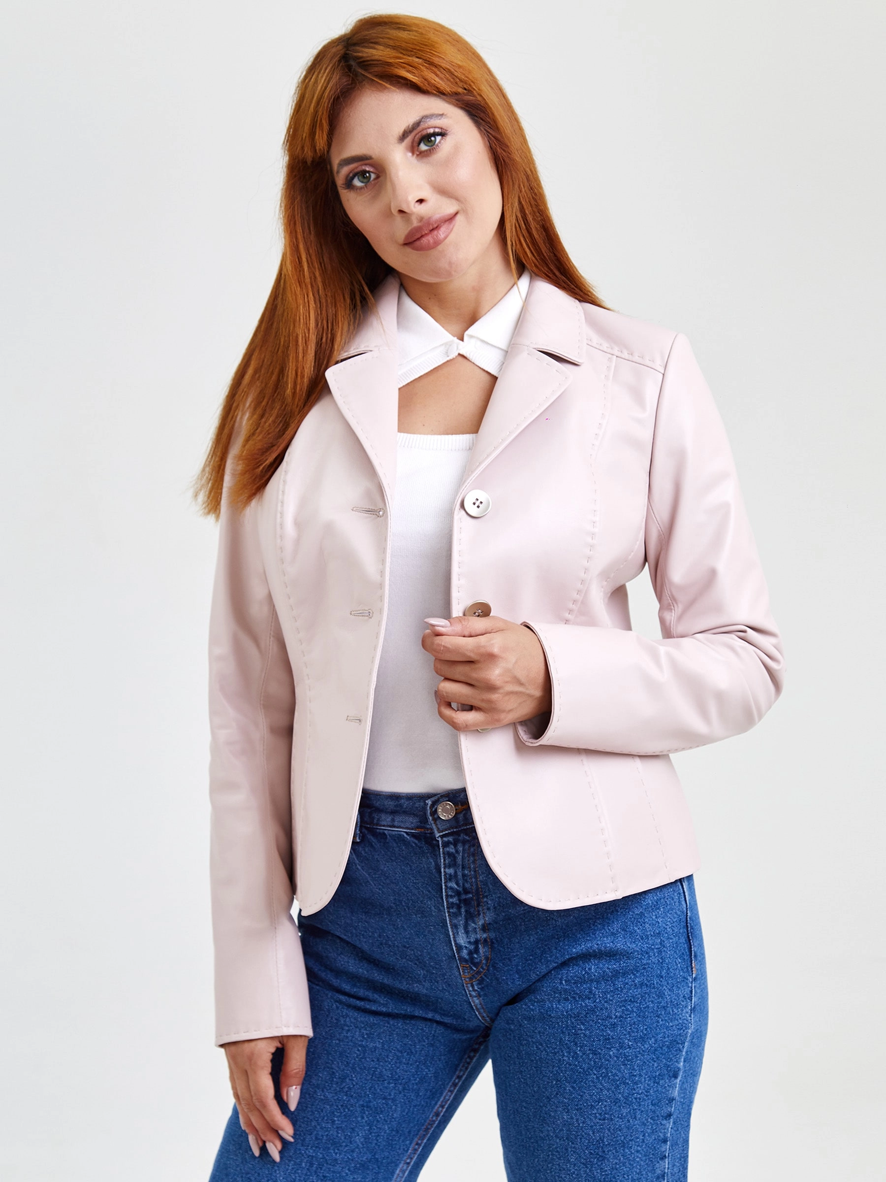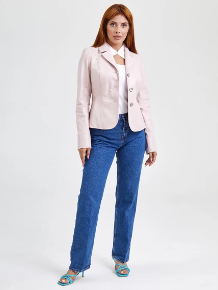 Кожаный женский пиджак 316рс, пудровый, размер 44, артикул 91522