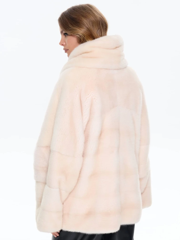 Элегантная короткая шуба бежевого цвета из меха норки в поперечной раскладке с эффектной полосатой текстурой. Удобный крой с рукавом реглан и укороченным силуэтом подходит для активной жизни. Многофункциональный воротник адаптируется к любой ситуации, а скрытые клипсы обеспечивают аккуратную посадку. Идеальный выбор для тех, кто ценит сочетание практичности и стиля.