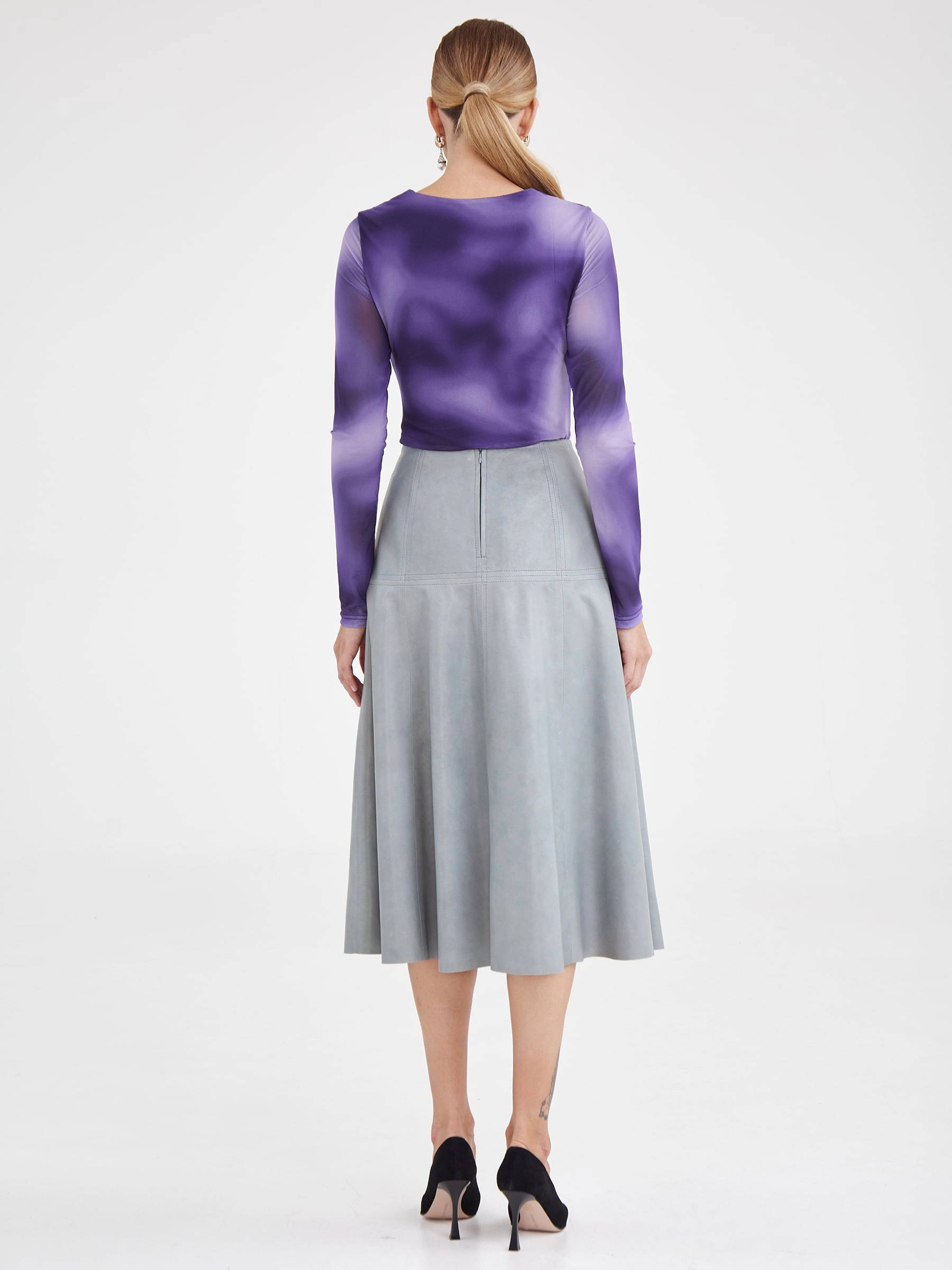 Кожаная юбка годе 14, серо-голубая, размер 46, артикул 85960