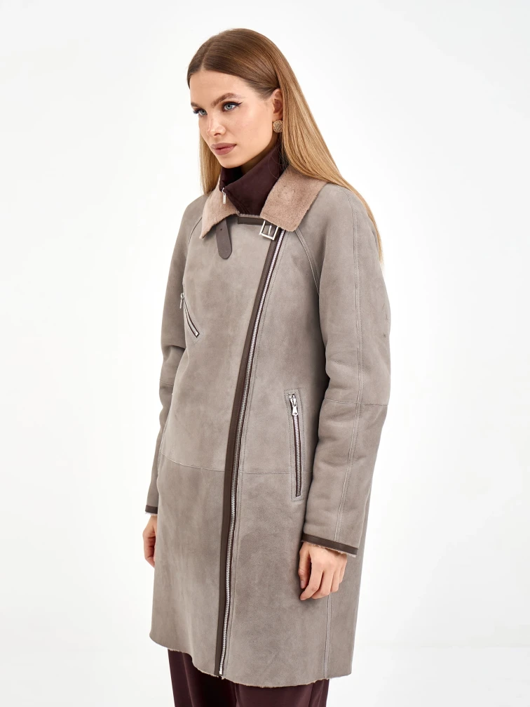 Товар серая женская дубленка косуха 2069, размер 46, артикул 64940 выполнен из овчина "мерино" с застежкой молния. Рассчитан на сезон: зима. Длина изделия 90 см, силуэт свободный.