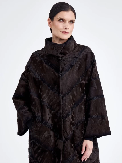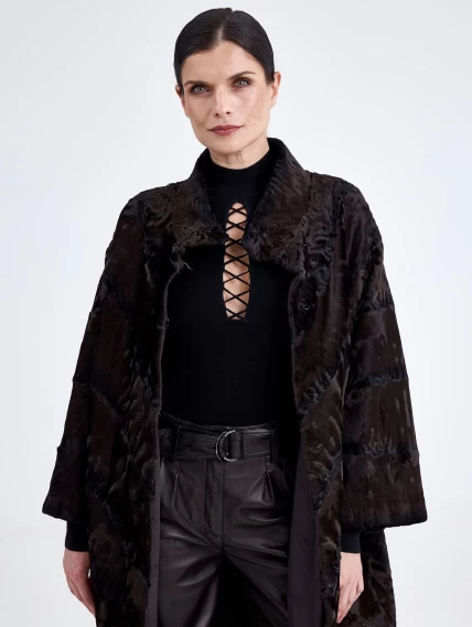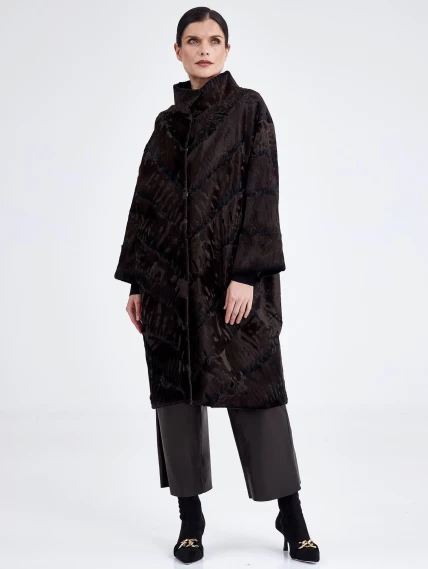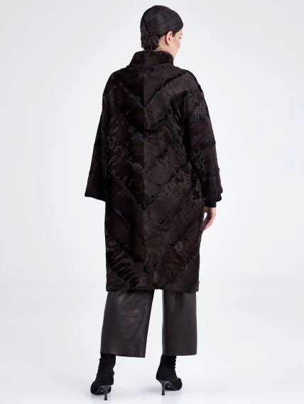Шуба из меха каракуля женская 17106, коричневая, размер 52, артикул 33140