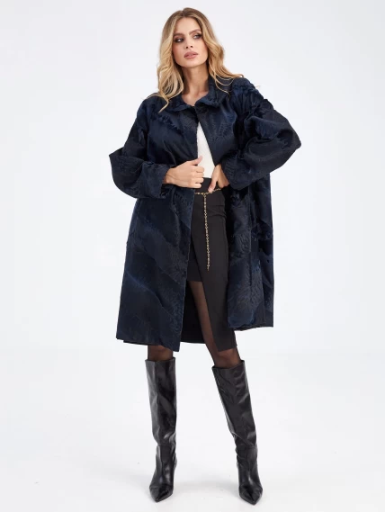 Шуба из меха каракуля женская Елизавета-д(в), синяя, размер 56, артикул 33770