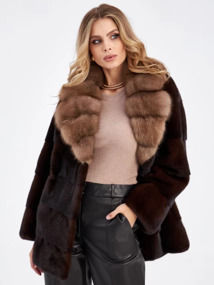 Шуба автоледи из меха норки с воротником из меха куницы для женщин 2а-к(авк), темно-коричневая, размер 48, артикул 33860