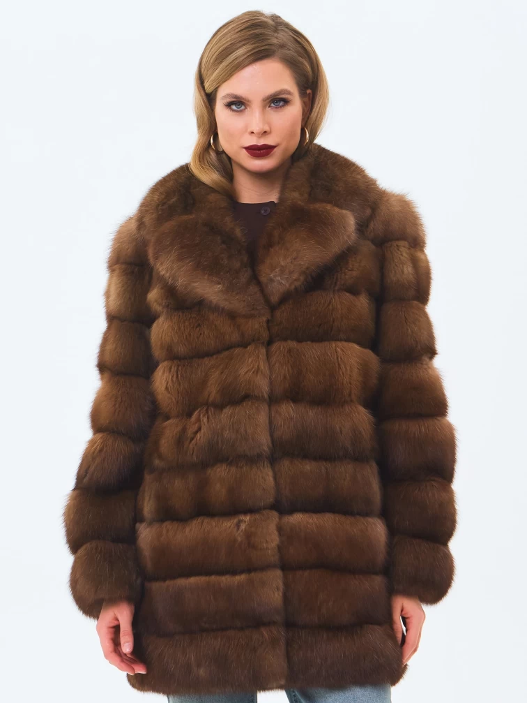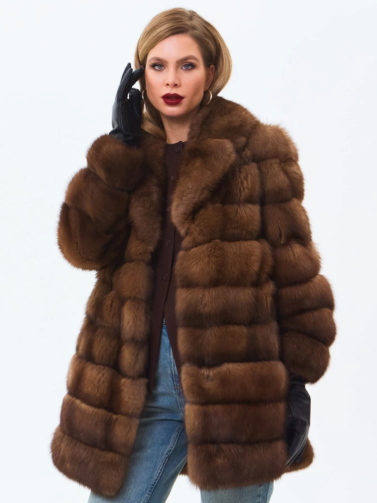 Товар шуба из меха соболя женская премиум класса 2а, темно-коричневая, размер 46, артикул 34210 выполнен из соболь с застежкой клипсы. Рассчитан на сезон: зима. Длина изделия 77 см, силуэт прямой.