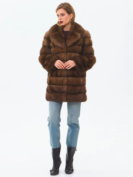 Шуба из меха соболя женская премиум класса 2А, темно-коричневая, размер 46, артикул 34210