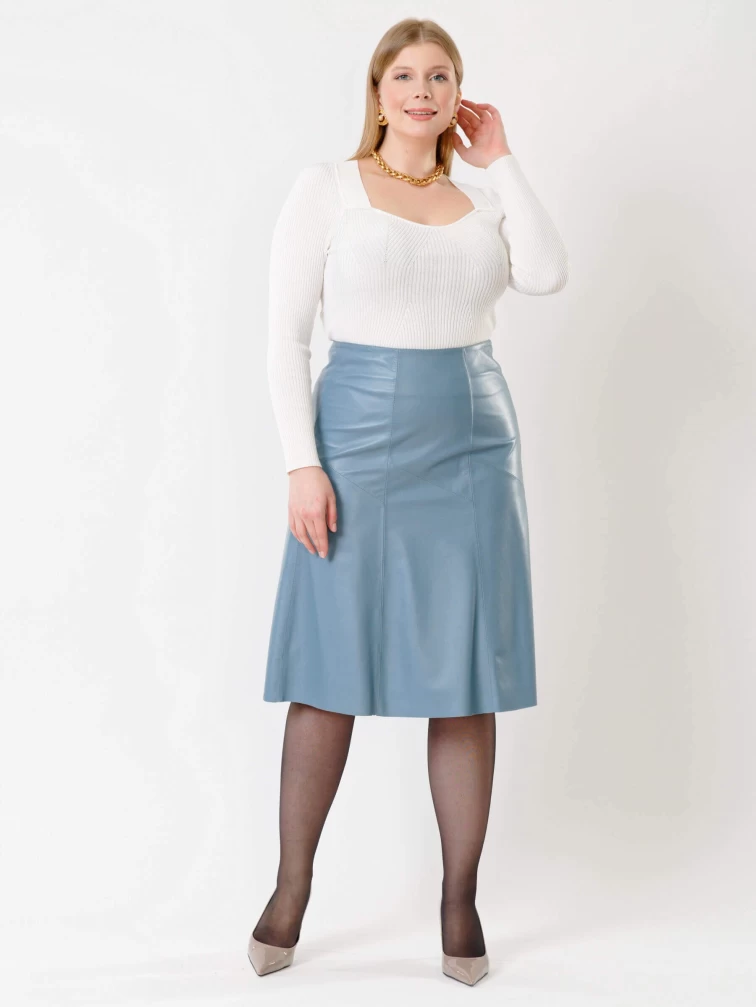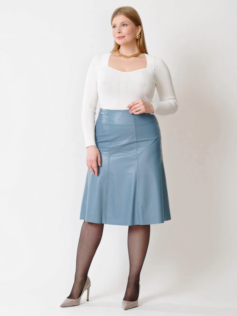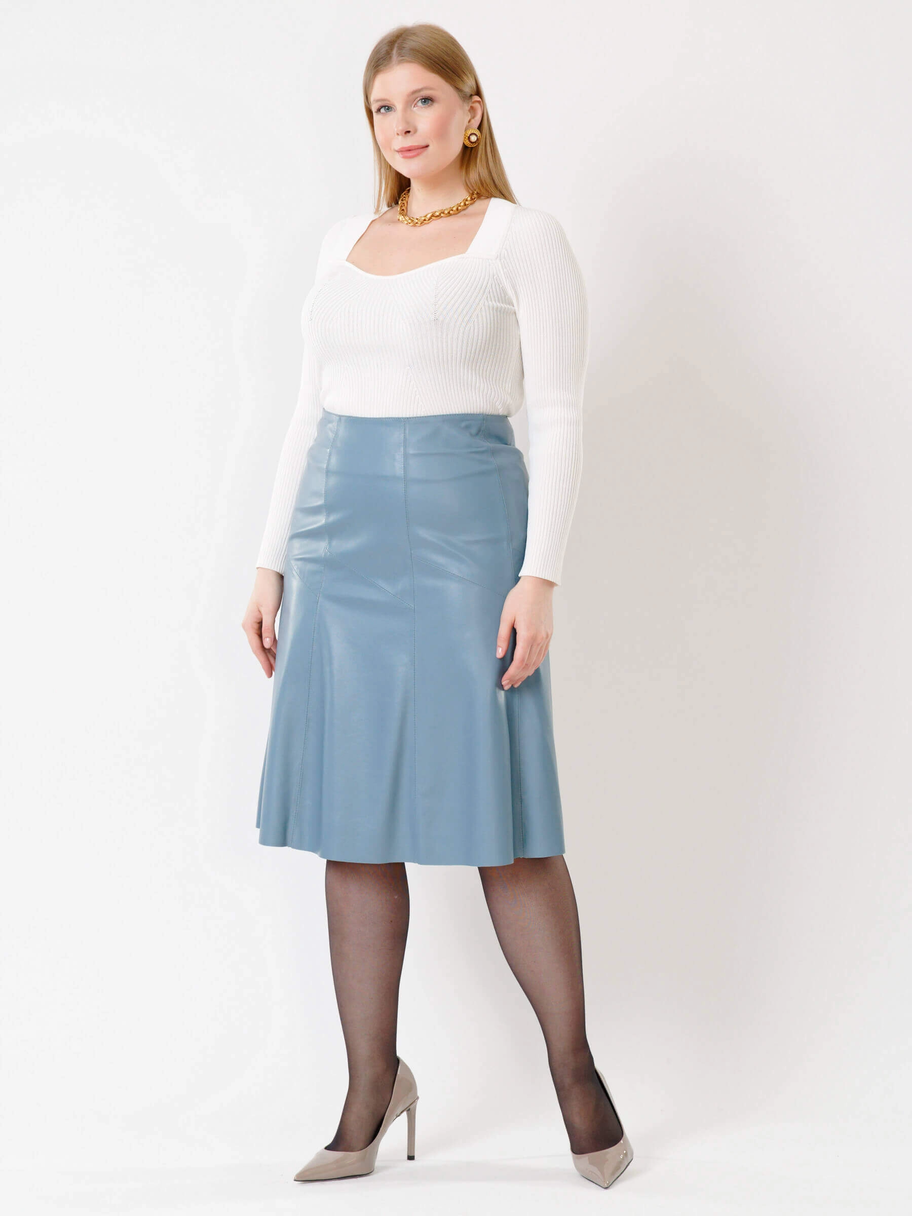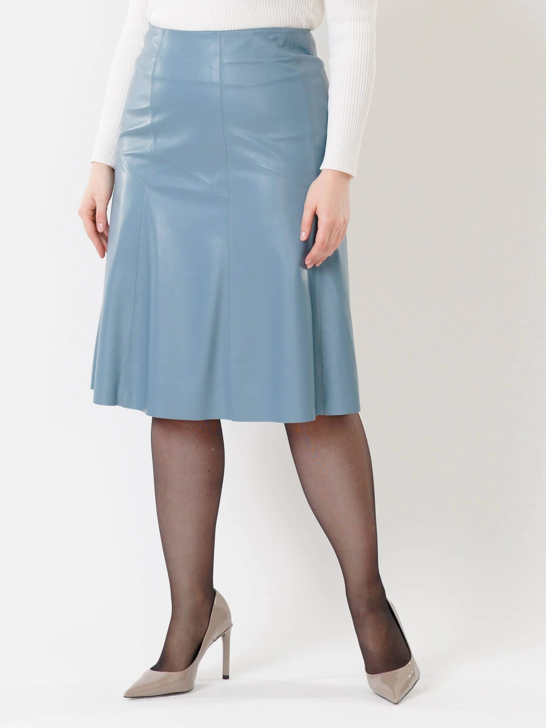 Расклешенная кожаная юбка 04, голубая, размер 48, артикул 85410