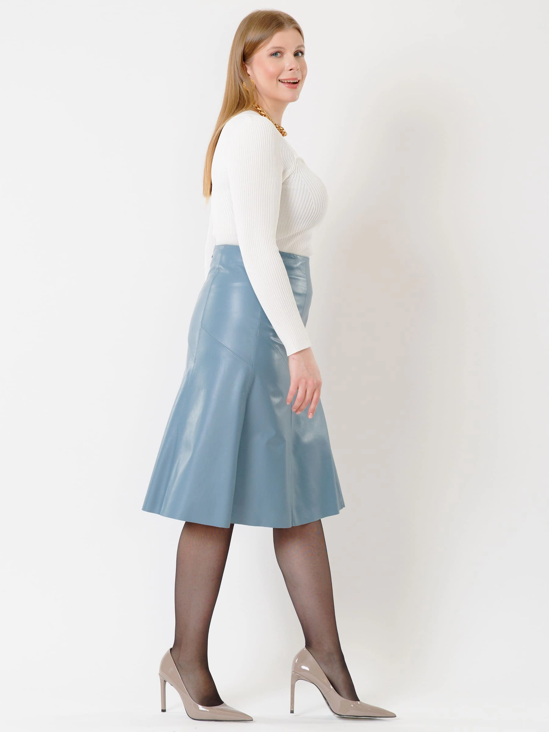 Товар расклешенная кожаная юбка 04, голубая, размер 48, артикул 85410 выполнен из натуральной кожи с застежкой молния. Рассчитан на сезон: демисезон. Длина изделия 68 см, силуэт расклешенный.