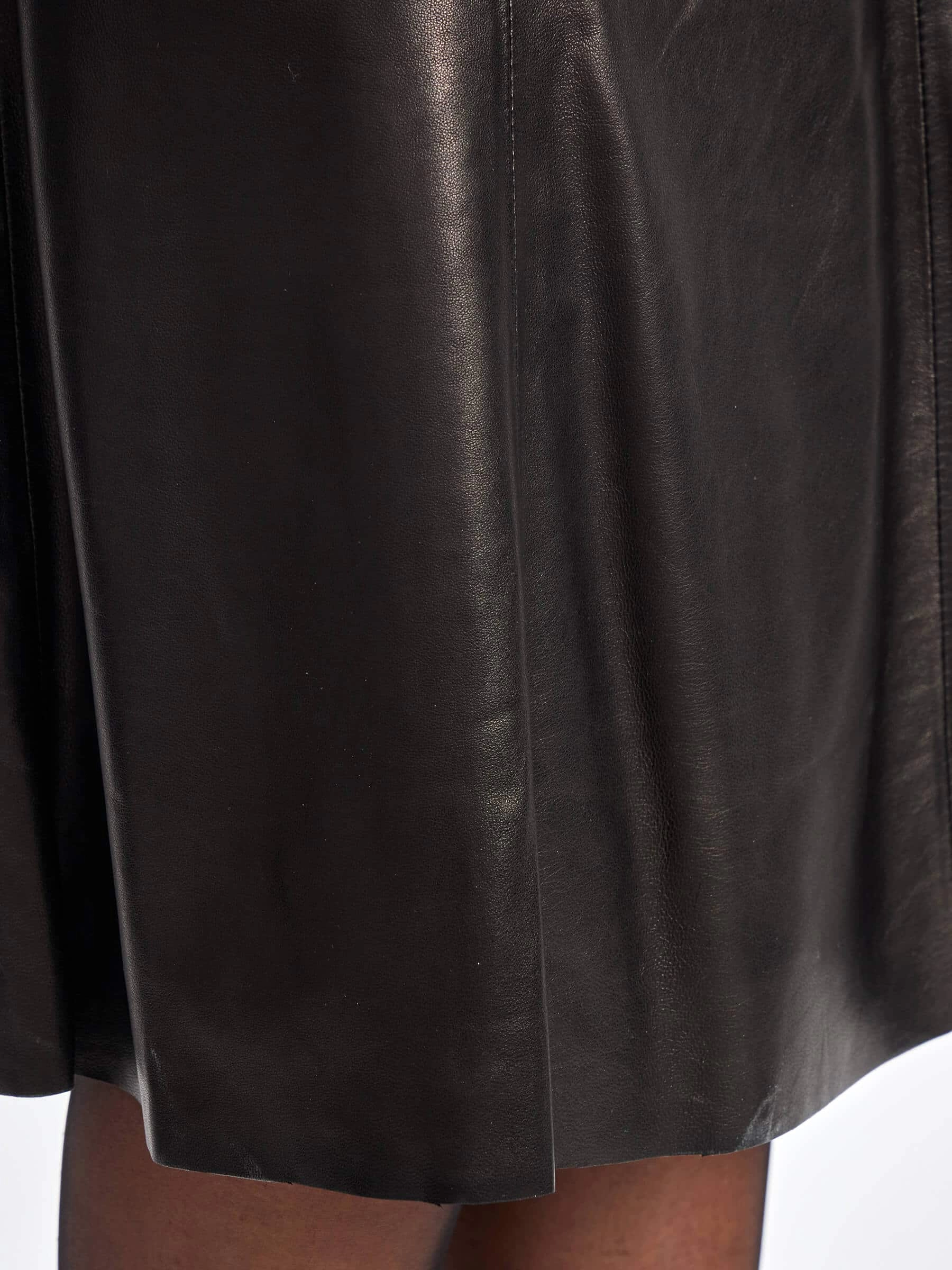 Расклешенная кожаная юбка 04, черная, размер 50, артикул 85970