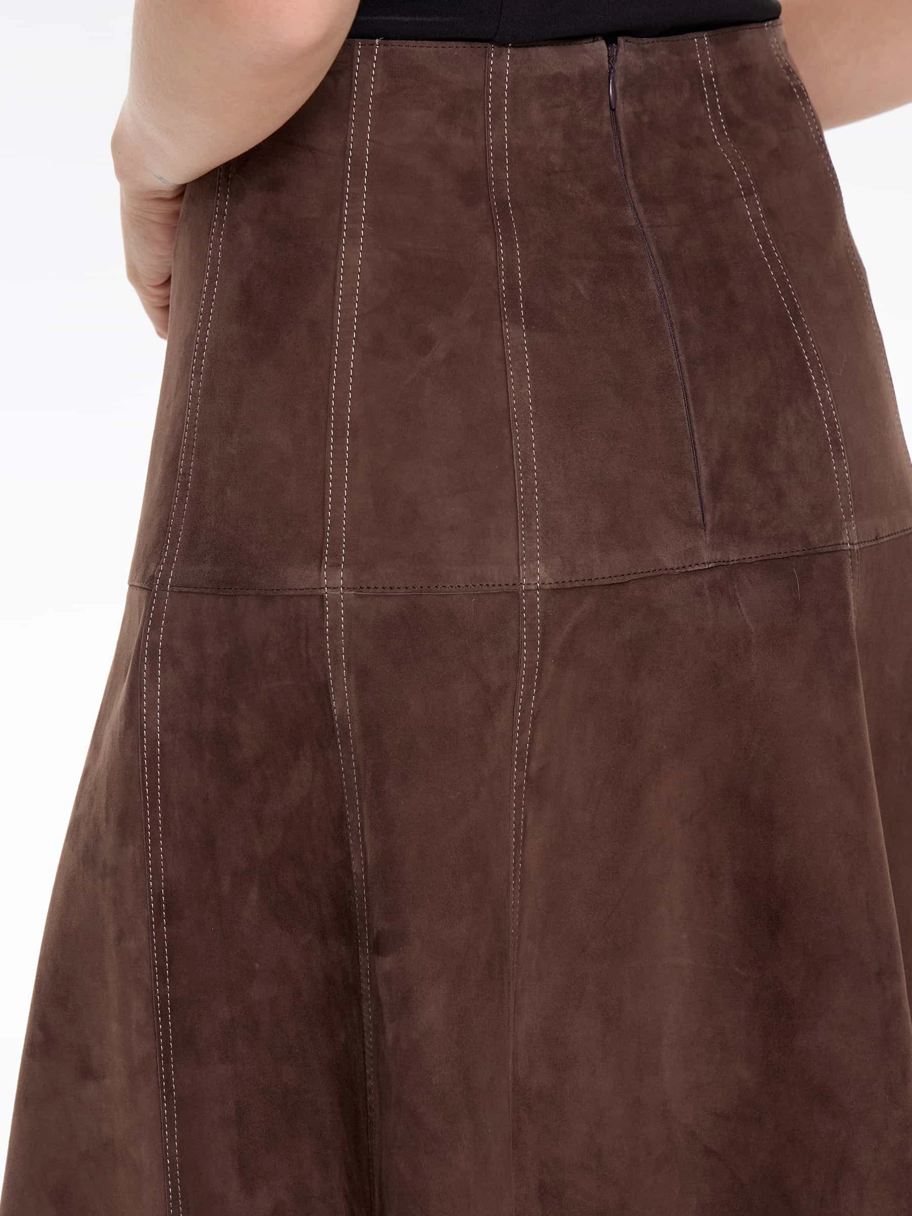 Товар замшевая юбка 17з, cветло-коричневая, размер 42, артикул 86060 выполнен из натуральной замши с застежкой молния. Рассчитан на сезон: всесезон. Длина изделия 78 см, силуэт полуприлегающий.