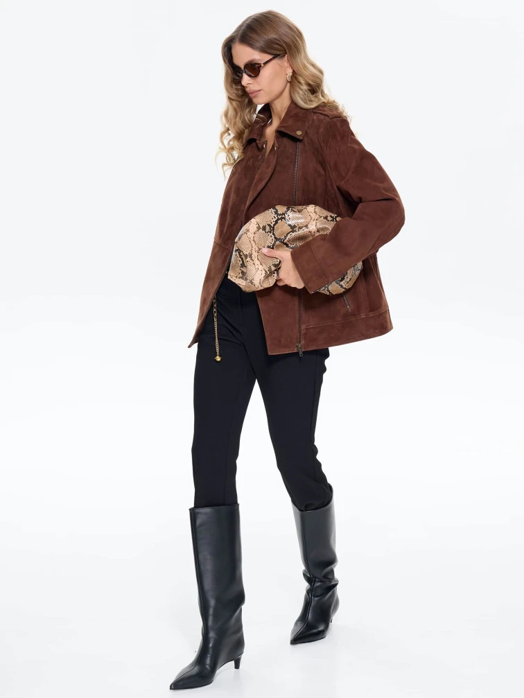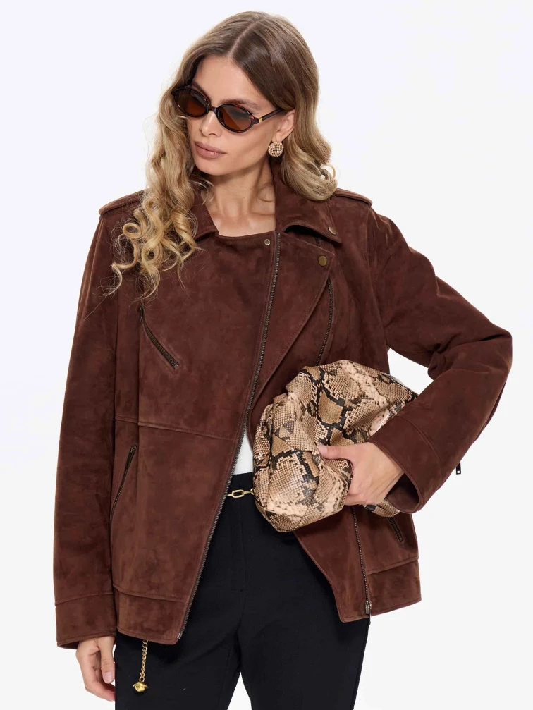 Замшевая женская куртка косуха премиум класса 3079з, коньячная, размер 44, артикул 24710