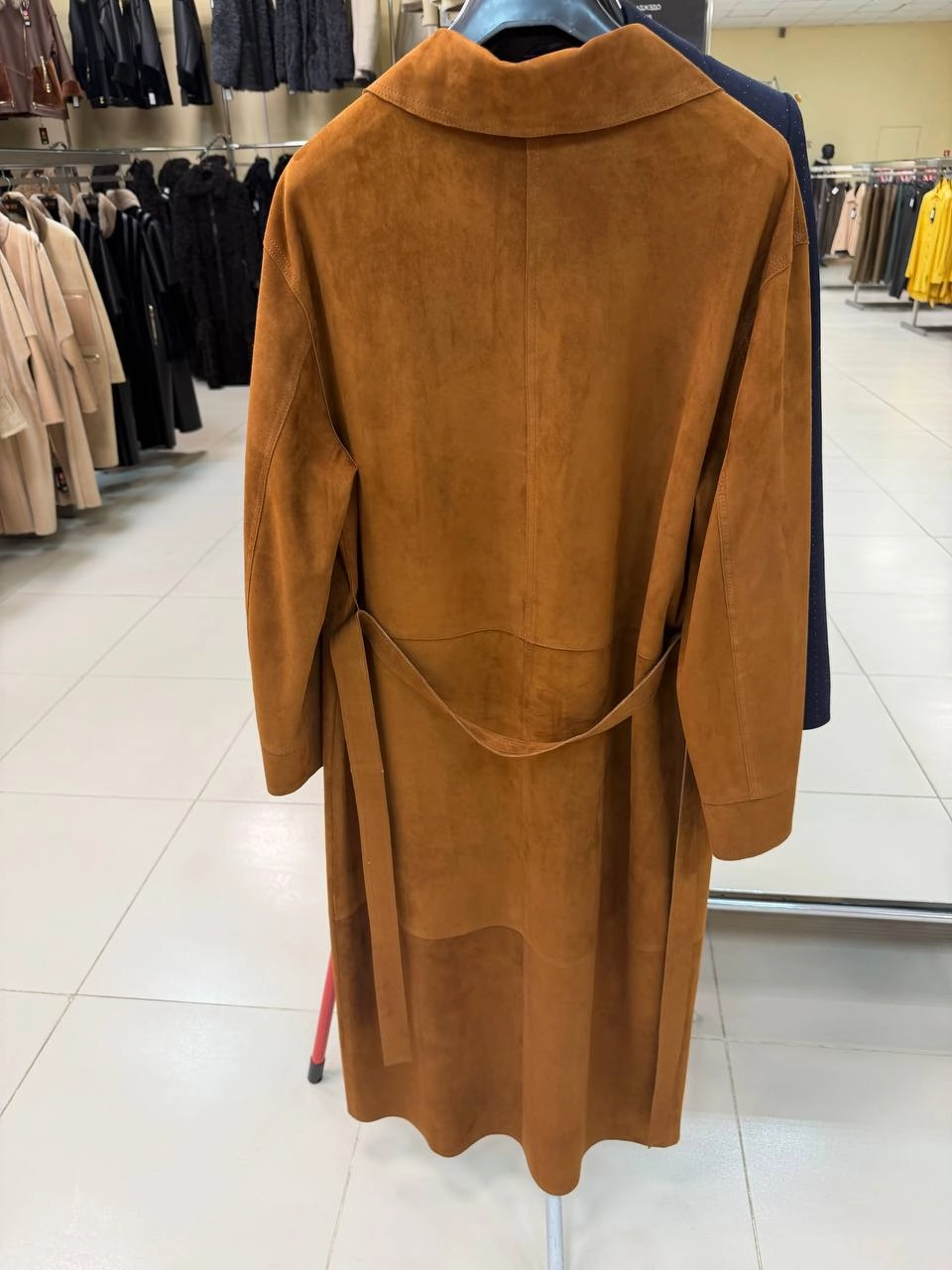 Товар замшевый женский плащ премиум класса 3113з, виски, размер 48, артикул 92400.