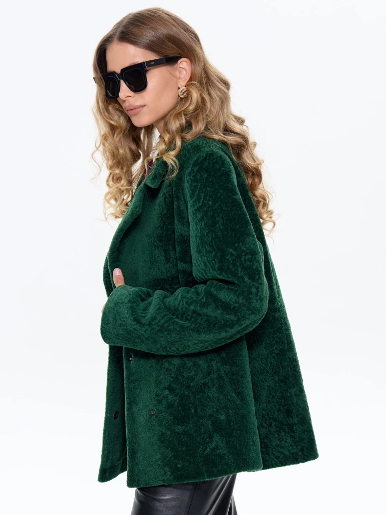 Зеленая дубленка из астрагана 58мех, размер 46, артикул 64760