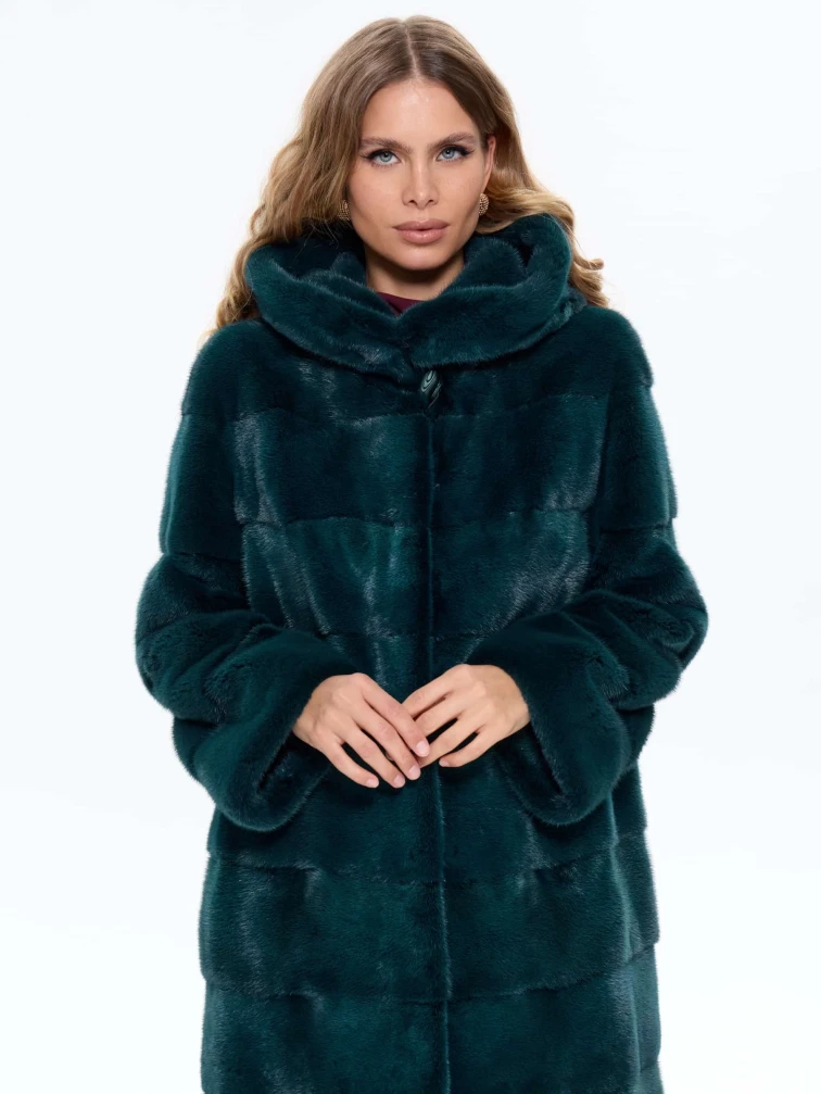 Зеленая норковая женская шуба с капюшоном 2а(к), размер 50, артикул 65490