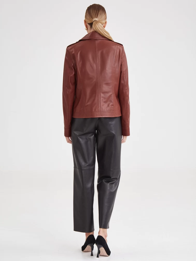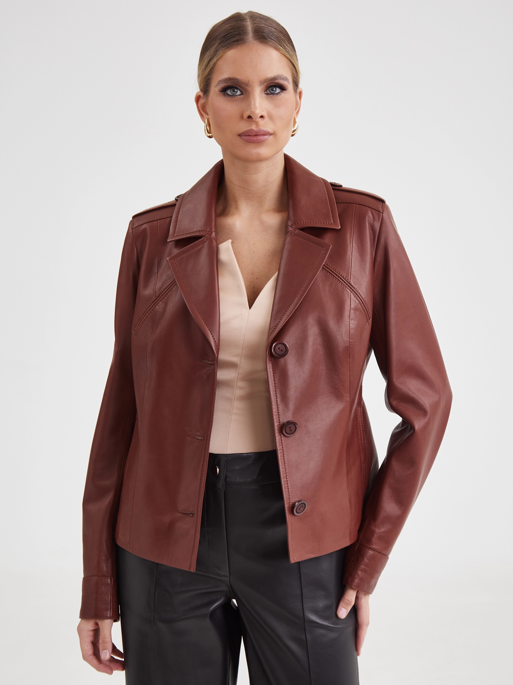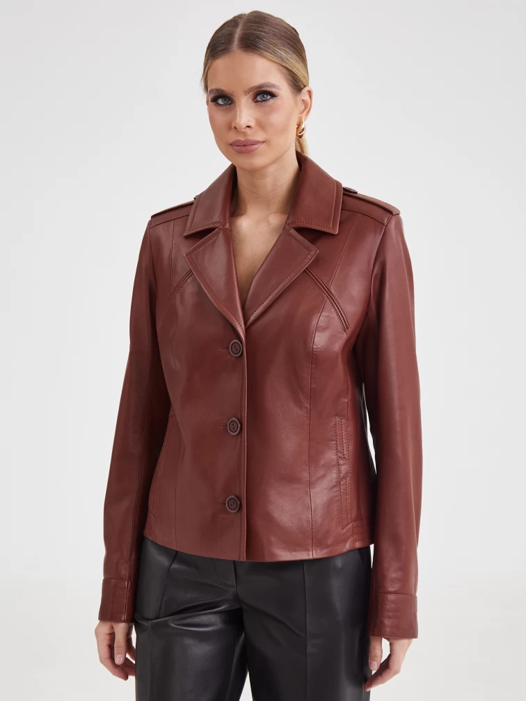 Короткая женская кожаная куртка на пуговицах премиум класса 304н, виски, размер 46, артикул 23320