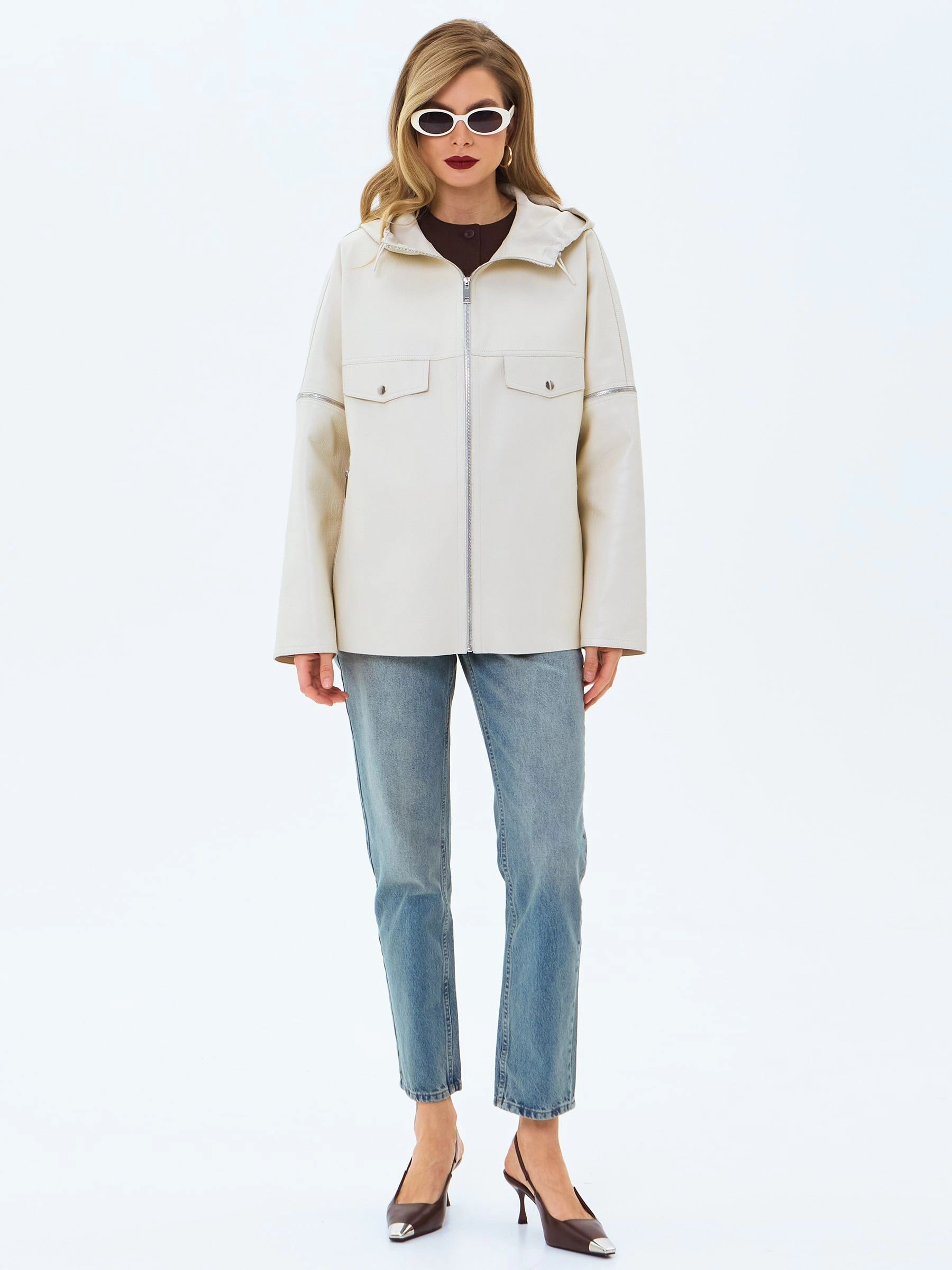 Товар женская кожаная куртка премиум класса 3086, бежевая, размер 46, артикул 24470 выполнен из натуральной кожи с застежкой молния. Рассчитан на сезон: весна-лето. Длина изделия 68 см, силуэт свободный.