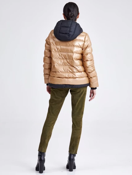 Женская кожаная куртка с капюшоном премиум класса 3028, бежевая, размер 44, артикул 23340