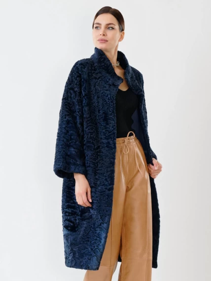 Каракулевая женская шуба 17106(с), синяя, размер 48, артикул 22630