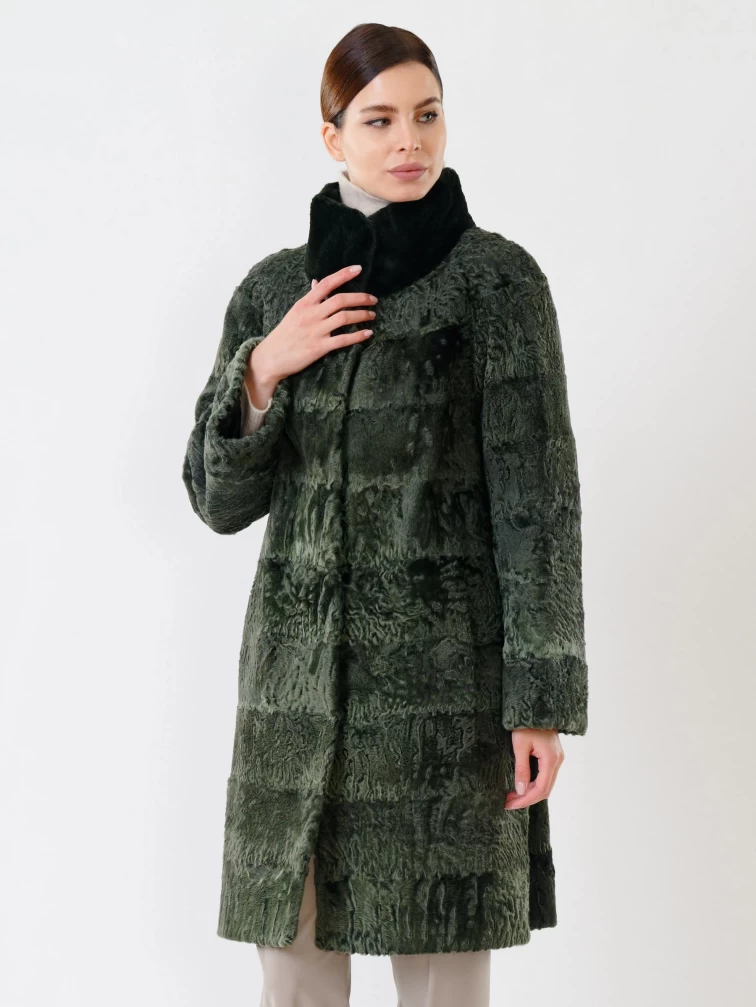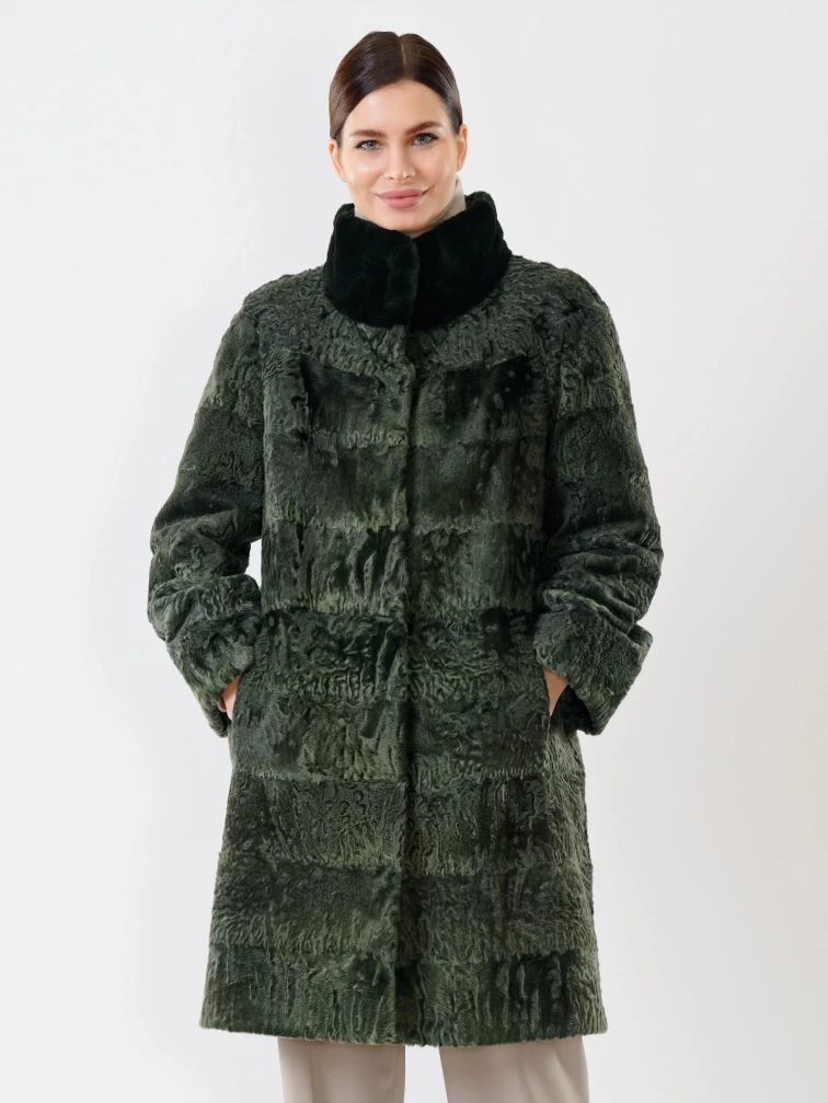 Женская шуба из меха каракуля с мехом бобра 325, зеленая, размер 48, артикул 22480