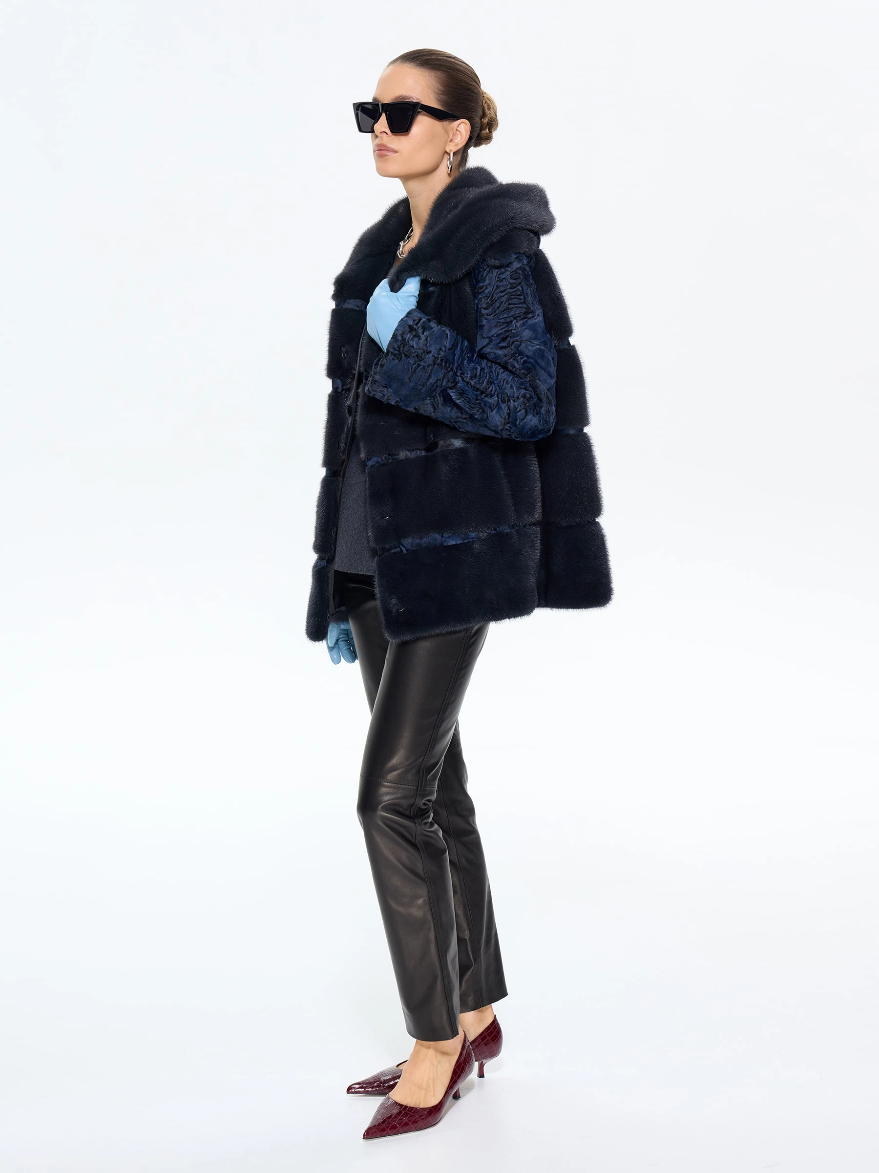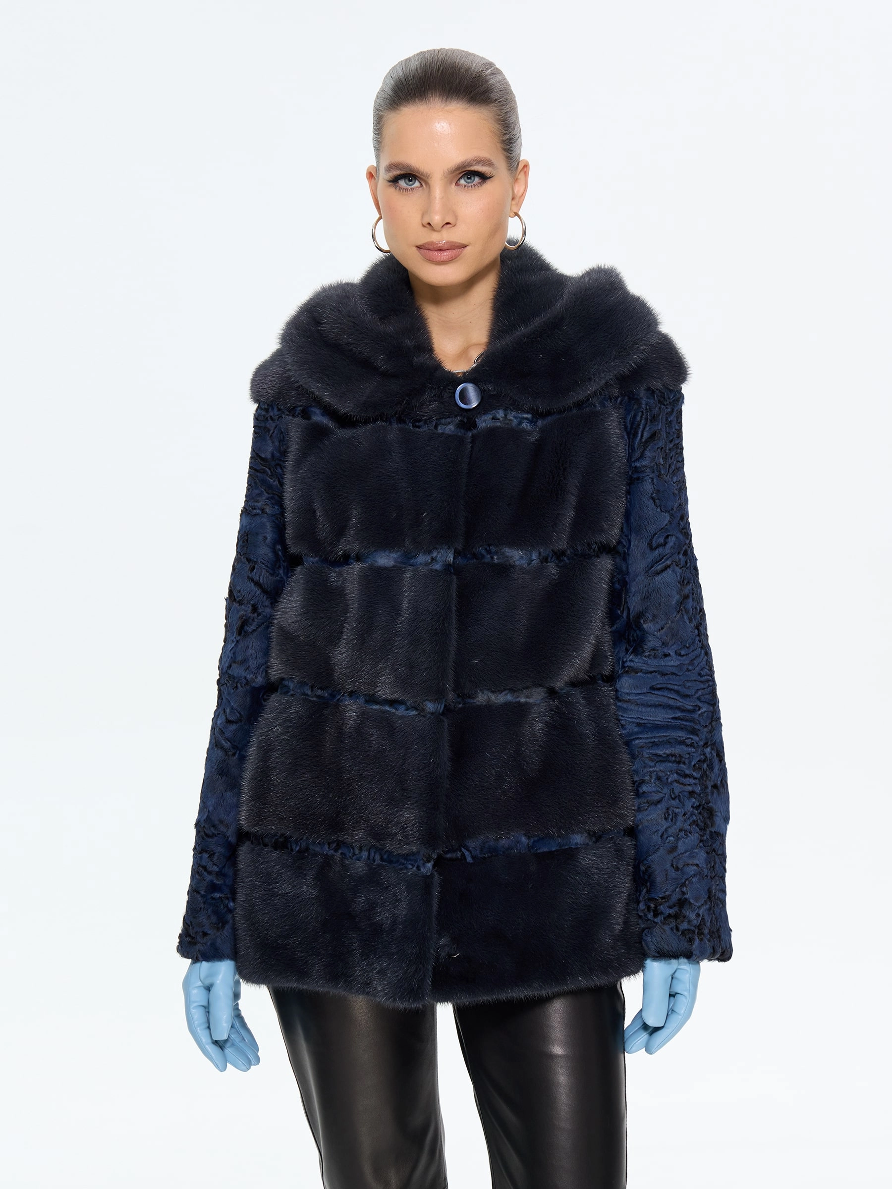 Элегантная шуба из меха каракульчи премиум-класса с элегантным капюшоном и отделкой из нежной норки. Классический прямой силуэт длиной 70 см создает утонченную элегантность, а практичный капюшон добавляет функциональности. Стилисты рекомендуют носить эту модель в насыщенном синем цвете с кожаными ботильонами и узкими джинсами для повседневного образа или с платьем-миди и сапогами-оверсайз для вечернего выхода. Идеальное сочетание неповторимого шарма, классических линий и современного комфорта.