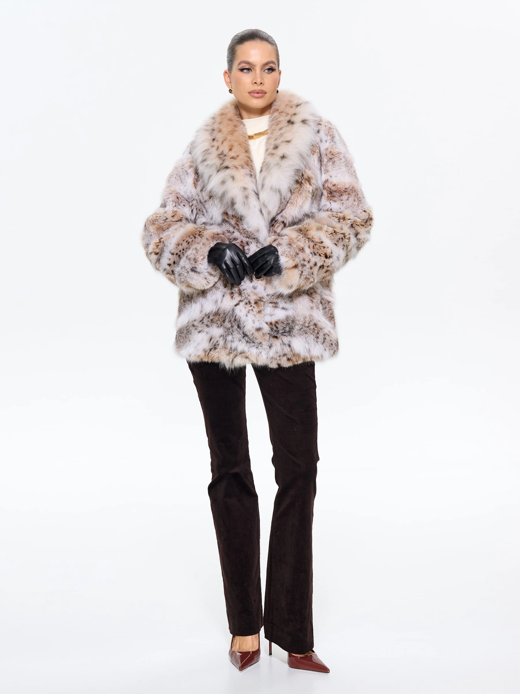 Товар женская шуба из меха рыси м850, натуральный, размер 48, артикул 65330 выполнен из мех рыси с застежкой клипсы. Рассчитан на сезон: зима. Длина изделия 75 см, силуэт прямой.