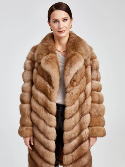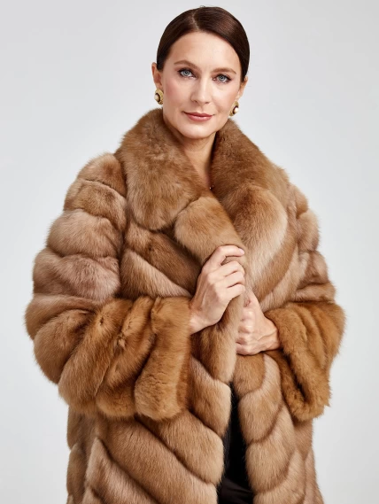 Шуба из меха соболя женская Элайн, светло-коричневая, размер 46, артикул 19180