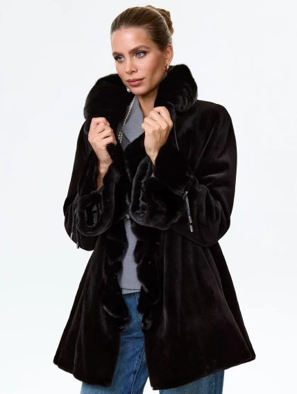 Товар женское норковое полупальто премиум класса лика, черное, размер 48, артикул 64580 выполнен из норка с застежкой клипсы. Рассчитан на сезон: зима. Длина изделия 80 см, силуэт прямой.
