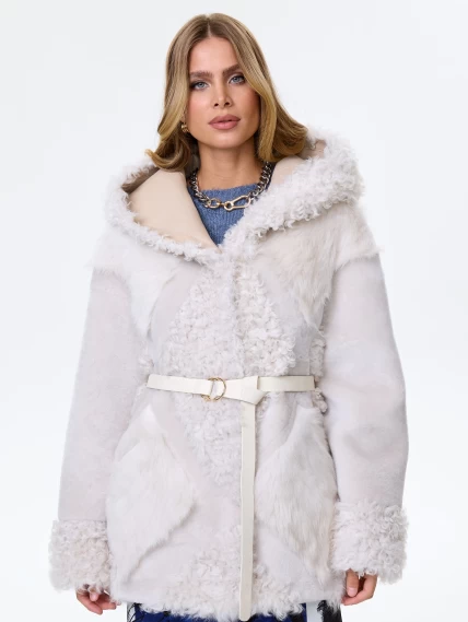 Женское полупальто из натуральной овчины с мехом тиградо премиум класса 2027, белое, размер 44, артикул 64410