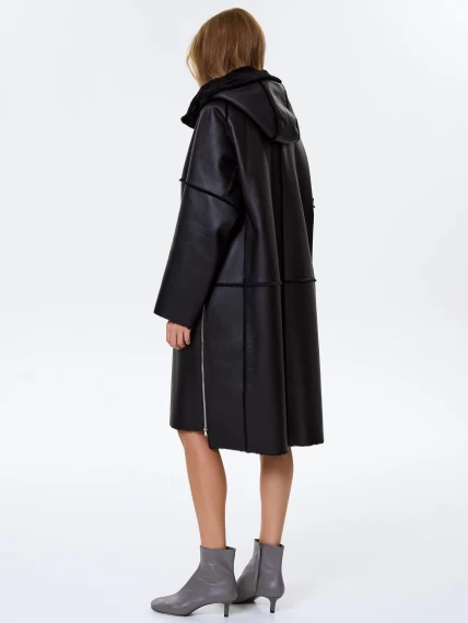 Женское полупальто с капюшоном из натуральной овчины премиум класса 2052, черное, размер 52, артикул 64290