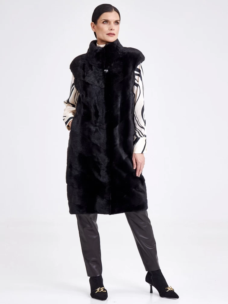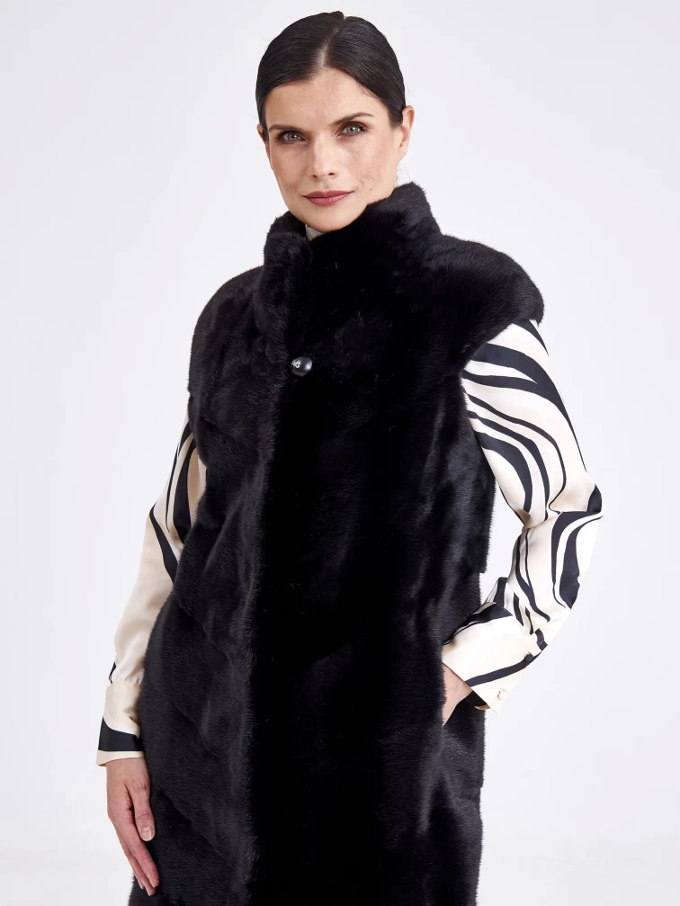 Длинный женский жилет из меха норки 2850(с), черный, размер 44, артикул 33210